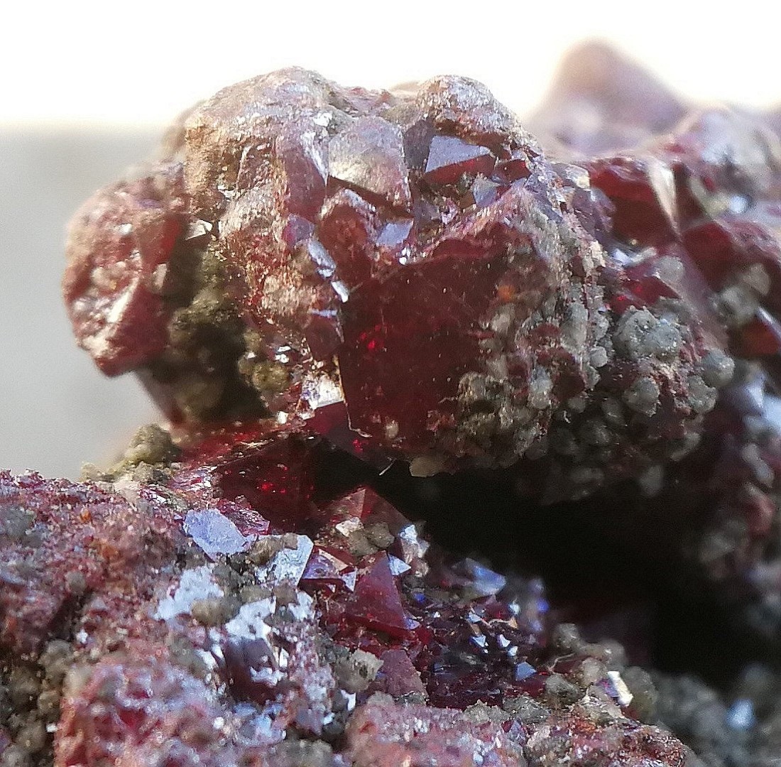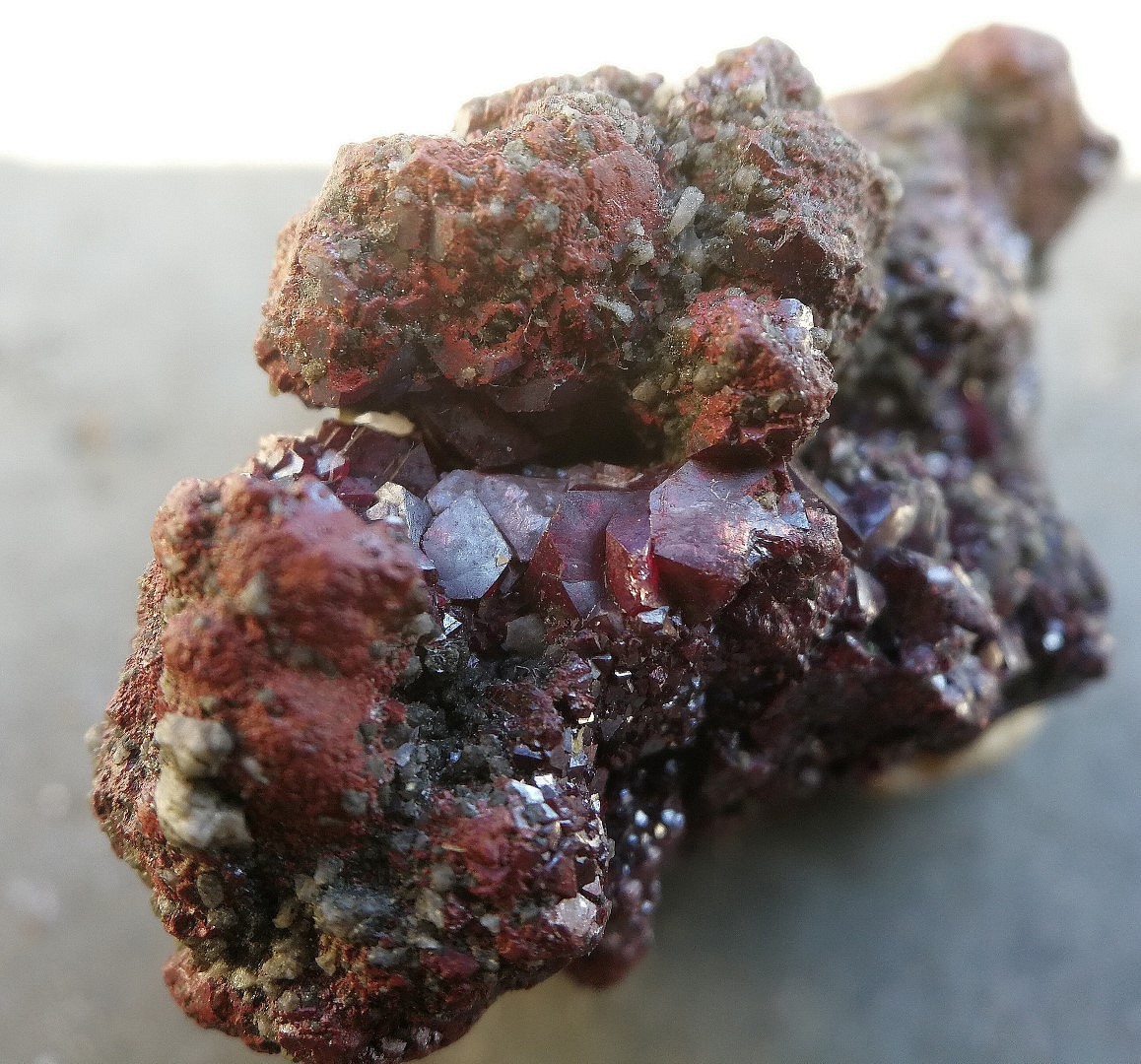 Voici quelques photos bien rapprochées de ma trouvaille (magasinière) estivale: une cuprite de Salsigne. Enivron 4 cm sur 2. Les plus grands cristaux font dans les 4mm.