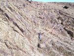 Géologie au Maroc, plis géologiques mesurés avec un marteau de géologue.