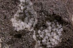 Basalte bulleux rempli de chabasite, avec argiles rouges.