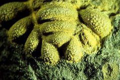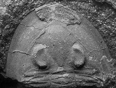 Céphalon incomplet dans nodule (x 1,5) llandeilo - Formation de Traveusot. Remarquer le tubercule médian à la base de la glabelle