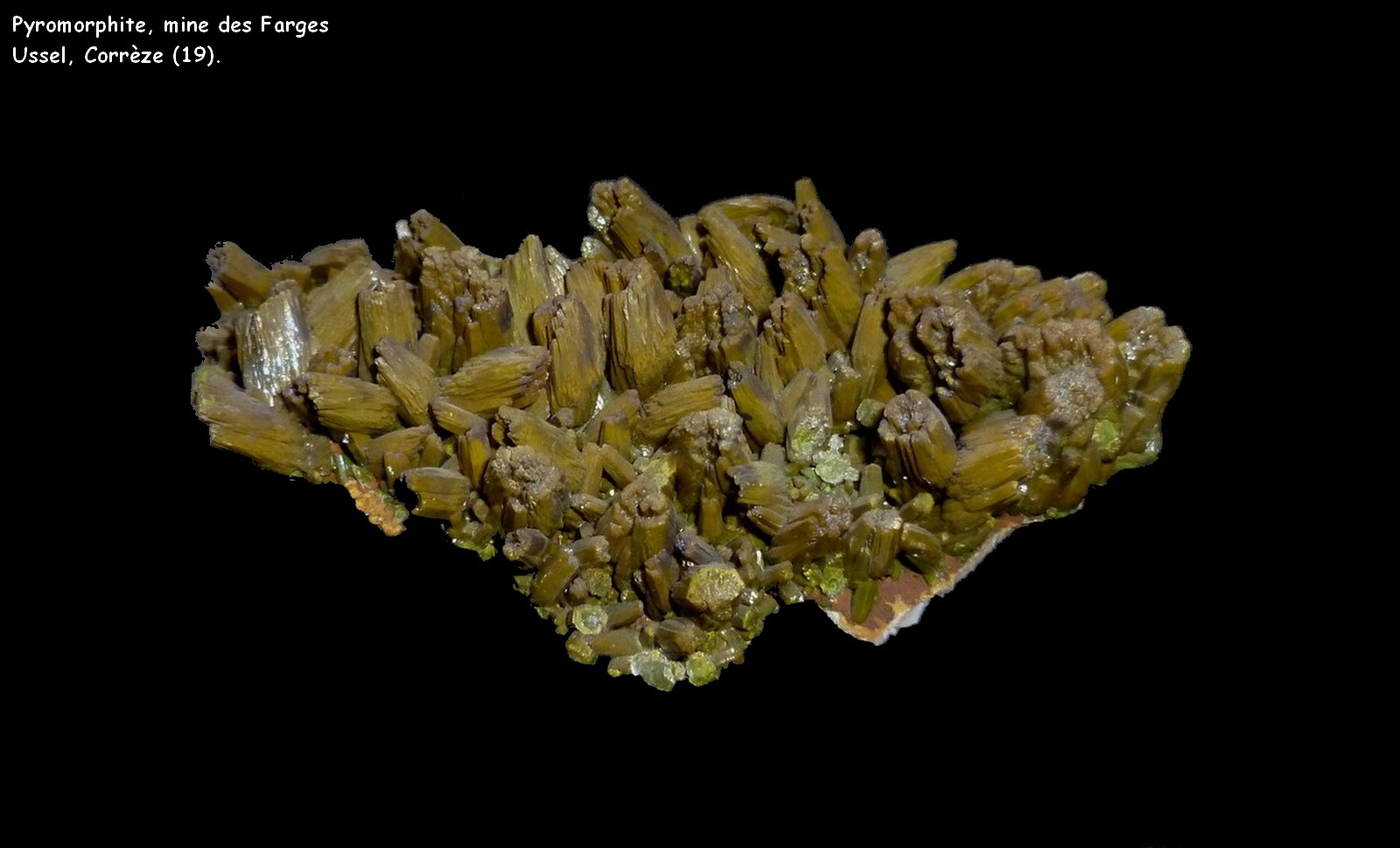 Pyromorphite, mine des Farges, Ussel, Corrèze.