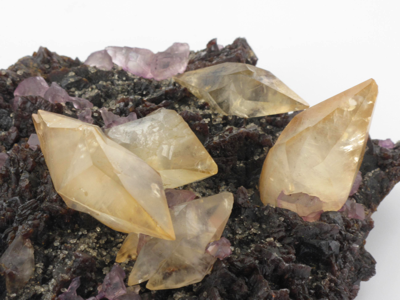 Calcite et fluorite sur sphalérite, Elmwood Mine, Tennessee, Etats-Unis.