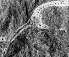 Carapace incomplète, remarquer les pointes pleurales (x 2 env.) Formation de Traveusot (llandeilo)