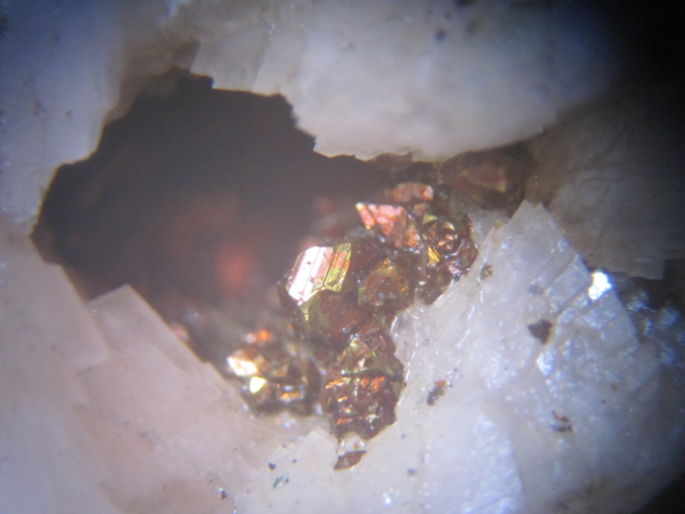 cristaux de chalcopyrite sur calcite