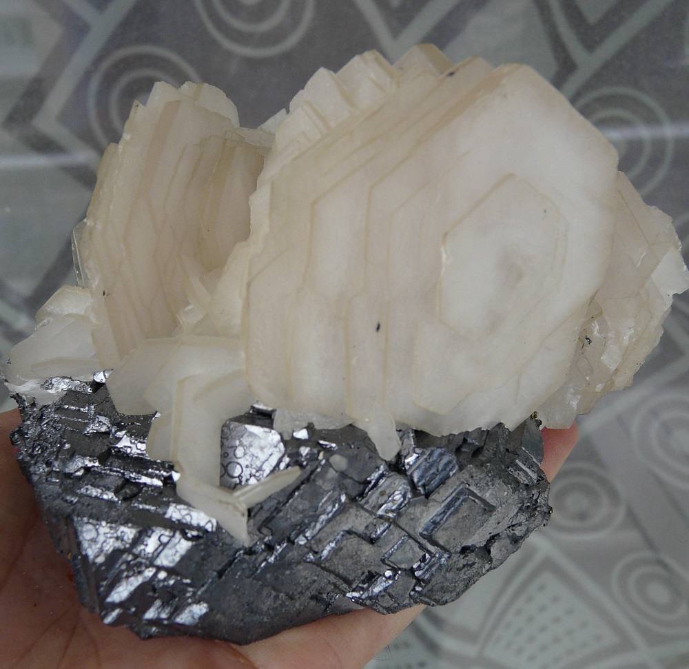 Calcite sur Galène, Mine Septemvri, Madan, Monts Rhodope, Bulgarie.