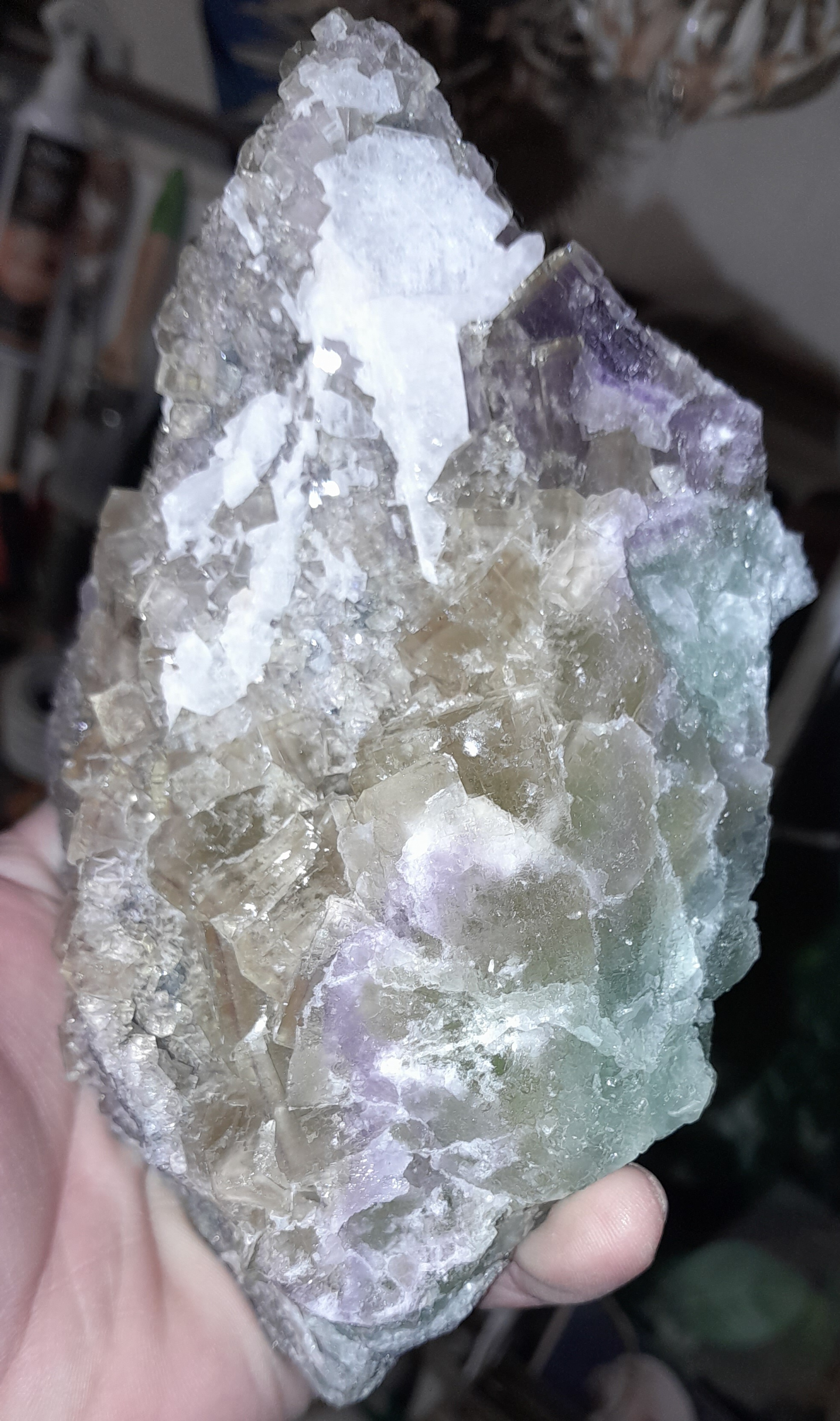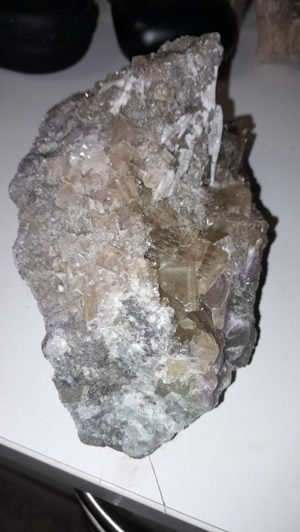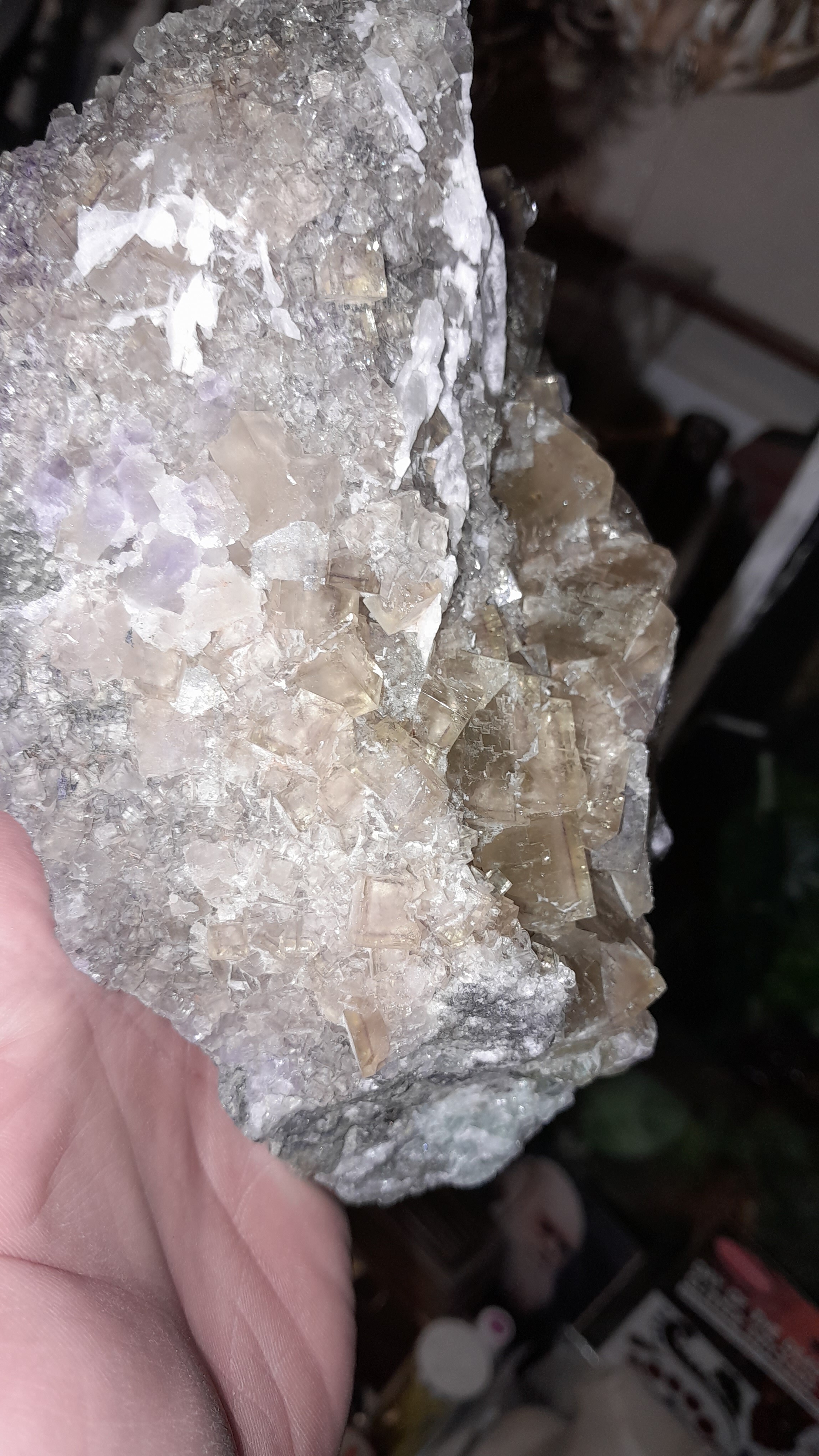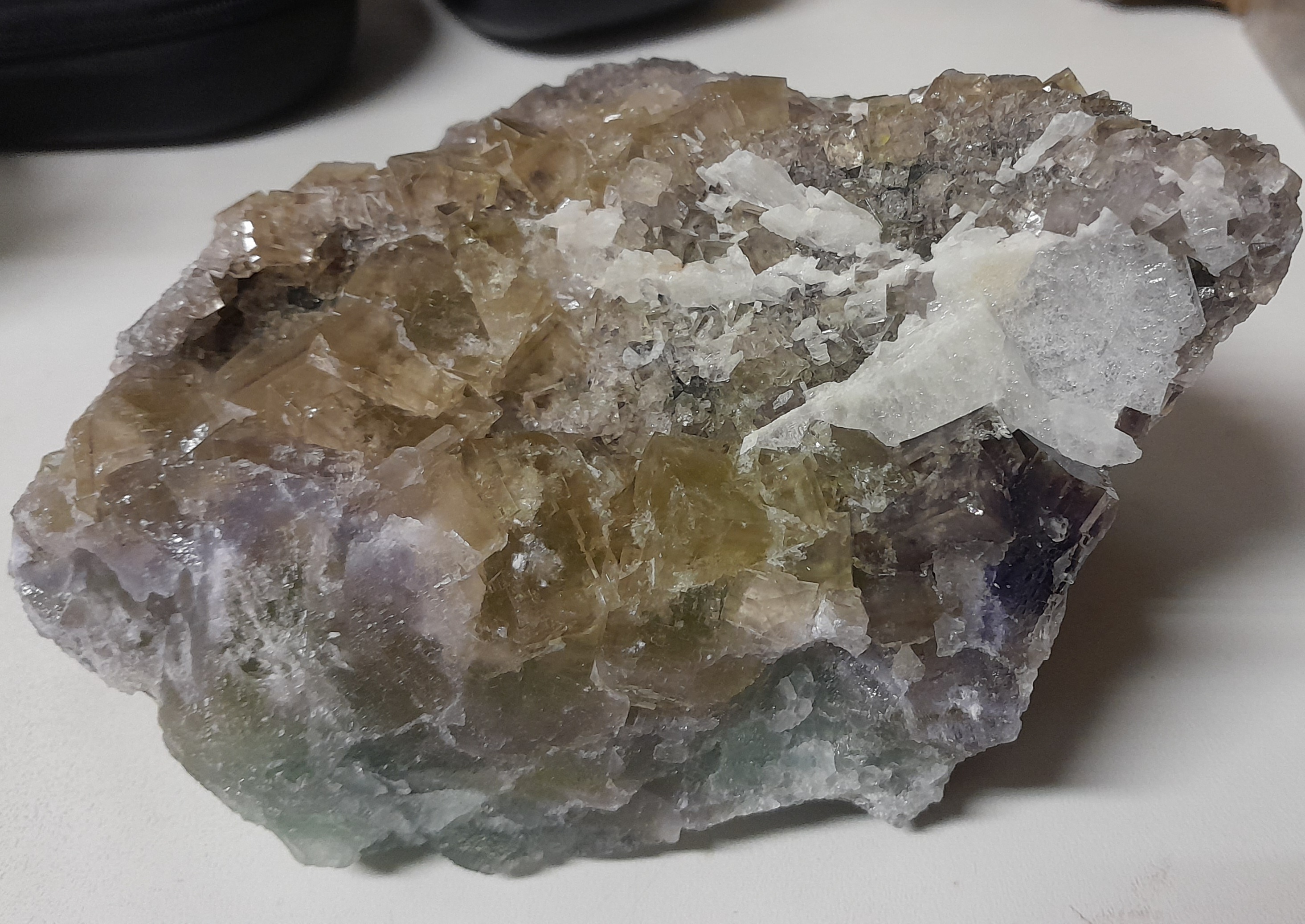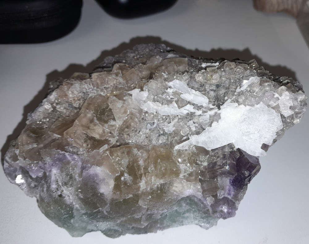 Bonjour à tous , voici quelques photos d'une fluorite acheté en brocante seulement, la provenance et inconnue, auriez-vous une idée ? Merci par avance