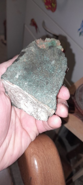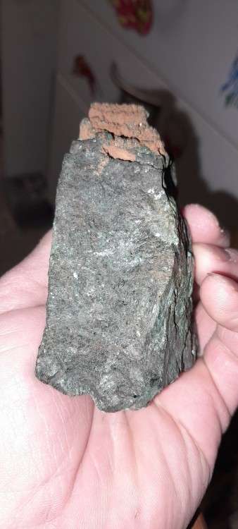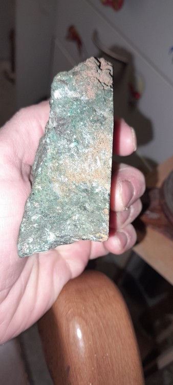 Bonsoir , voici une pièce, sans provenance, vert brillant, un peu métallique, ayant une odeur de fer . Si vous avez une idée