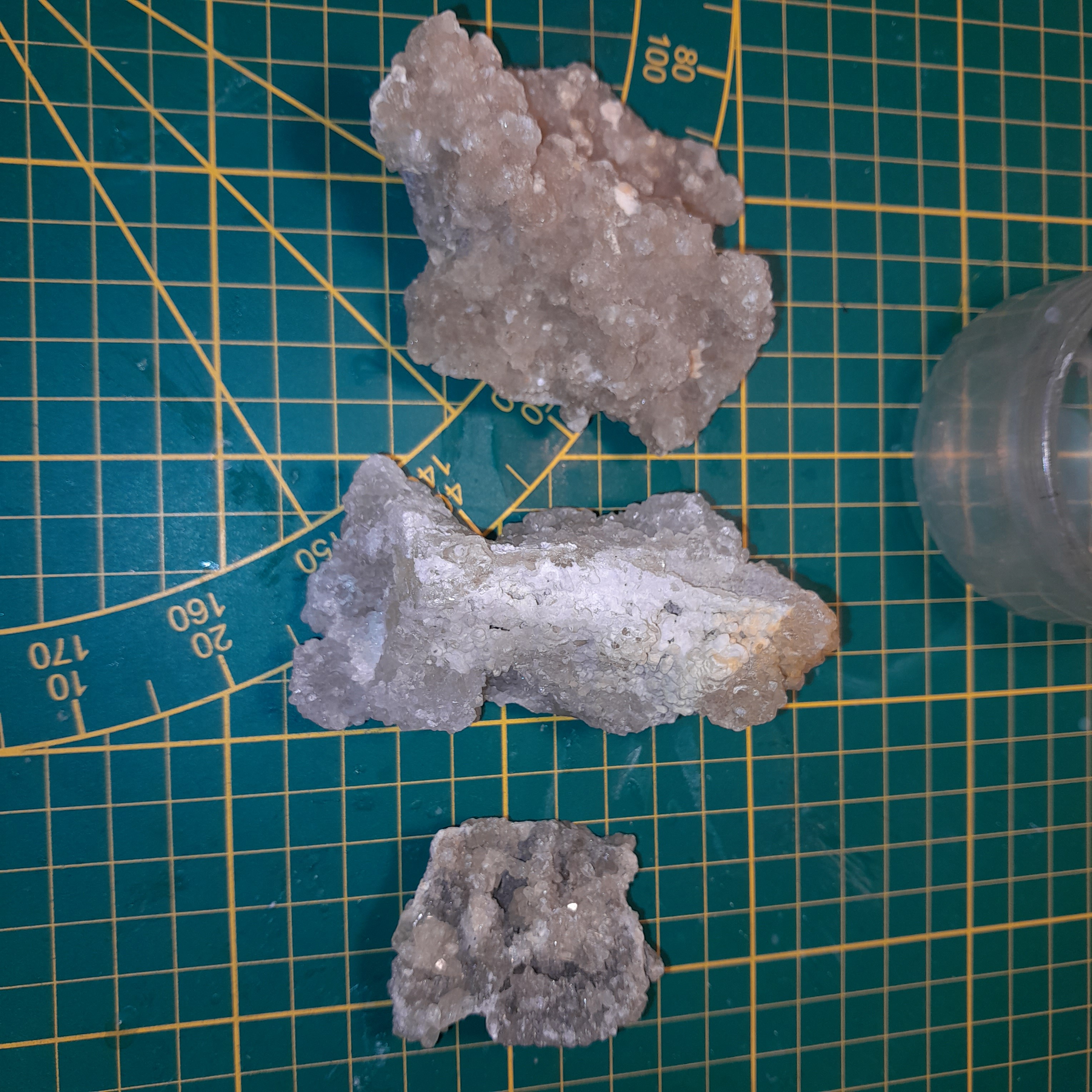 Merci pour toute ces informations , seulement ils on l'air fragile, je ne me risquerait pas à les laisser aussi longtemps dans un bain d'acide, effectivement la personne m'a indiqué que c'était une légère oxydation, la je viens de gratter une petite partie à l'aide de papier de verre et ça marche , sans rayé le quartz , mais je ne peux pas faire ça pour tout les échantillons. -