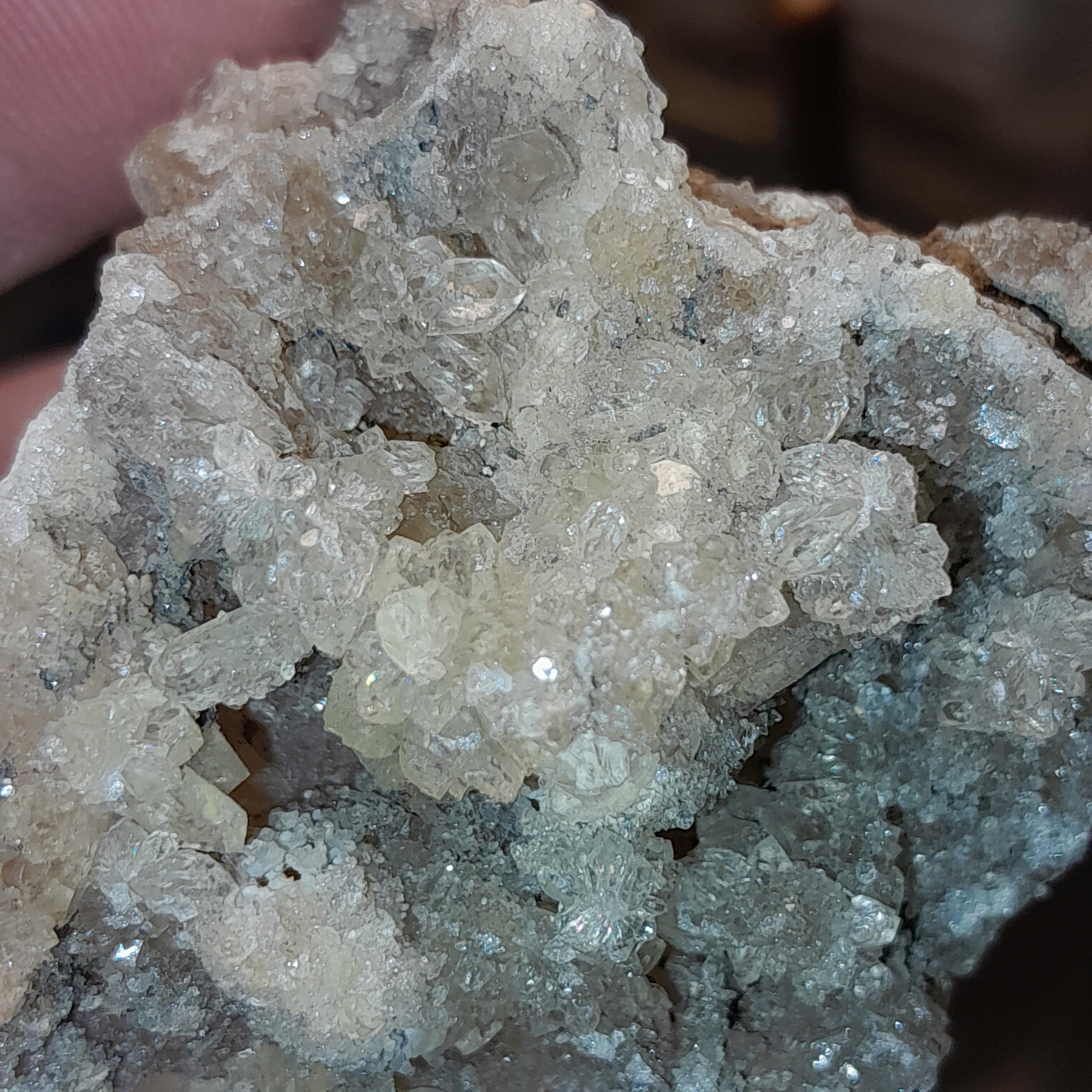 Pour les photos 1,2,3,4,5 , ça réagi à l'acide mais pas les cristaux , plutôt les sédiments qu'il y autour , j'ai également trois échantillons, qui ressemblent à l'échantillon photo 4 et 5 , et j'ai trouve une correspondance, avec quartz trou de la halle , Paris est-ce possible ? -