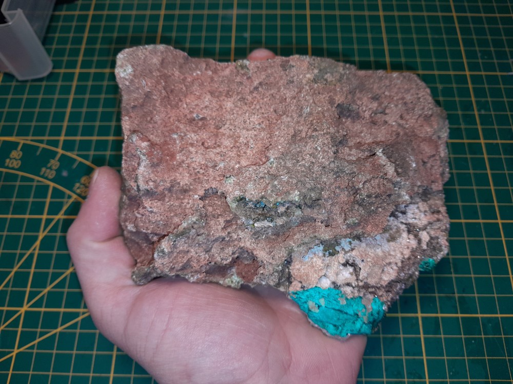 Alors , la personne qui avait cette pièce dans ca collection est décédé dans les années 50 , et ces fils on stocké à la cave, mineraux , fossile etc.... Du coup l'échantillon n'est pas du tout récent