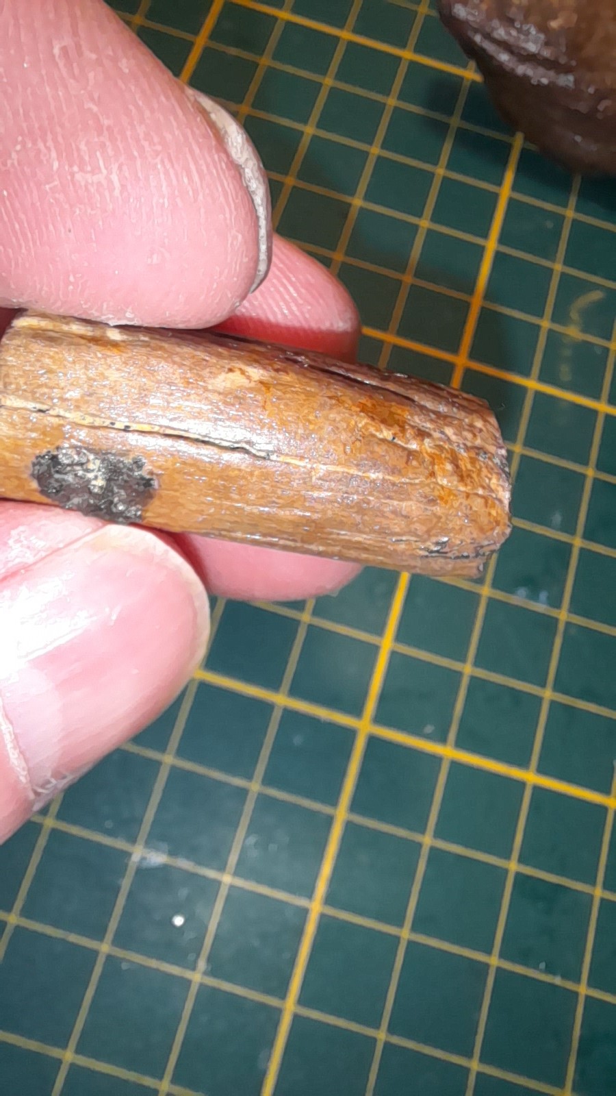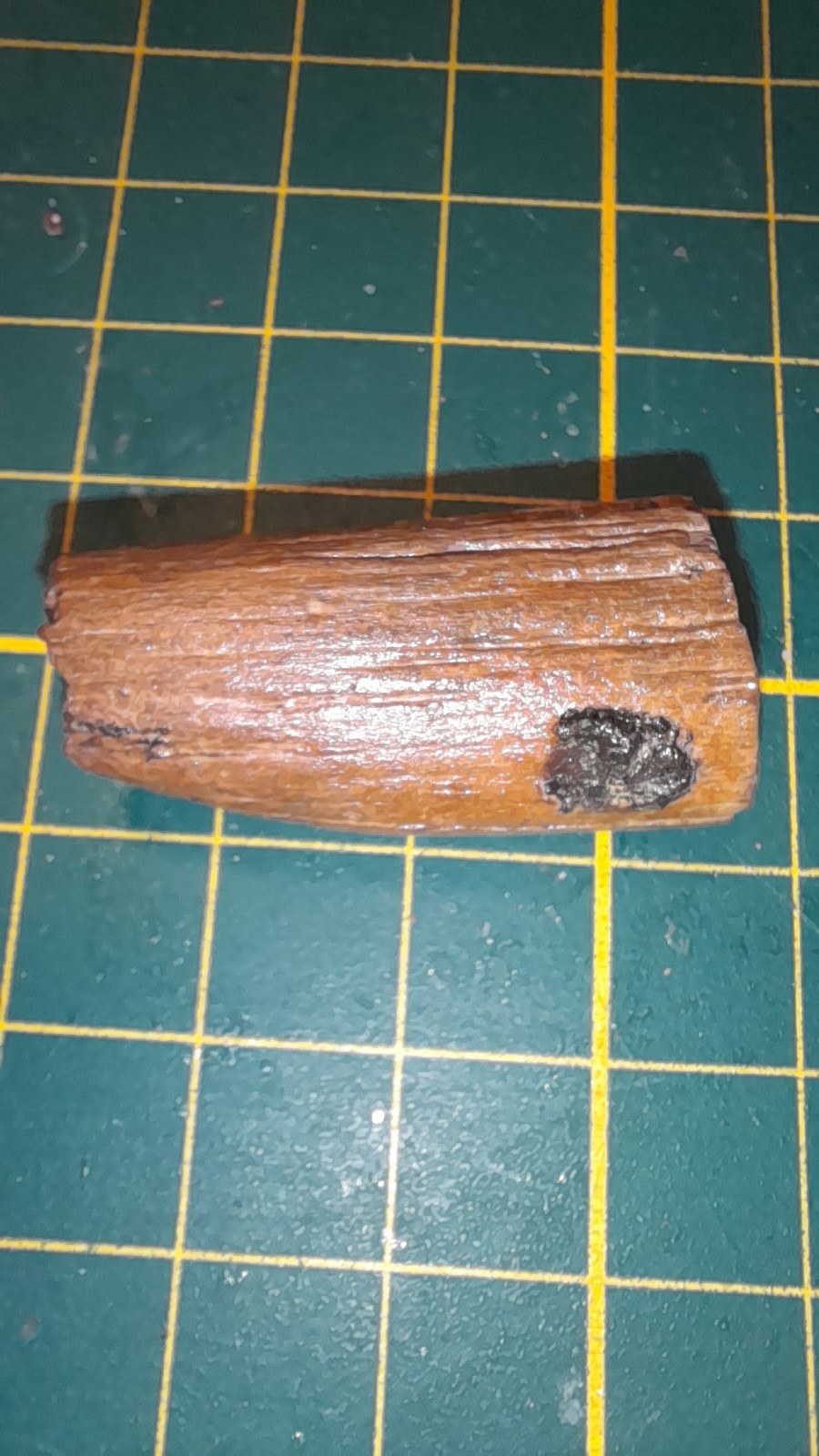 Trouve dans une ancienne collection des années 40 , je n'ai pas vraiment d'idée, juste la forme , couleur qui pourrait me faire penser au bois ou une dent .