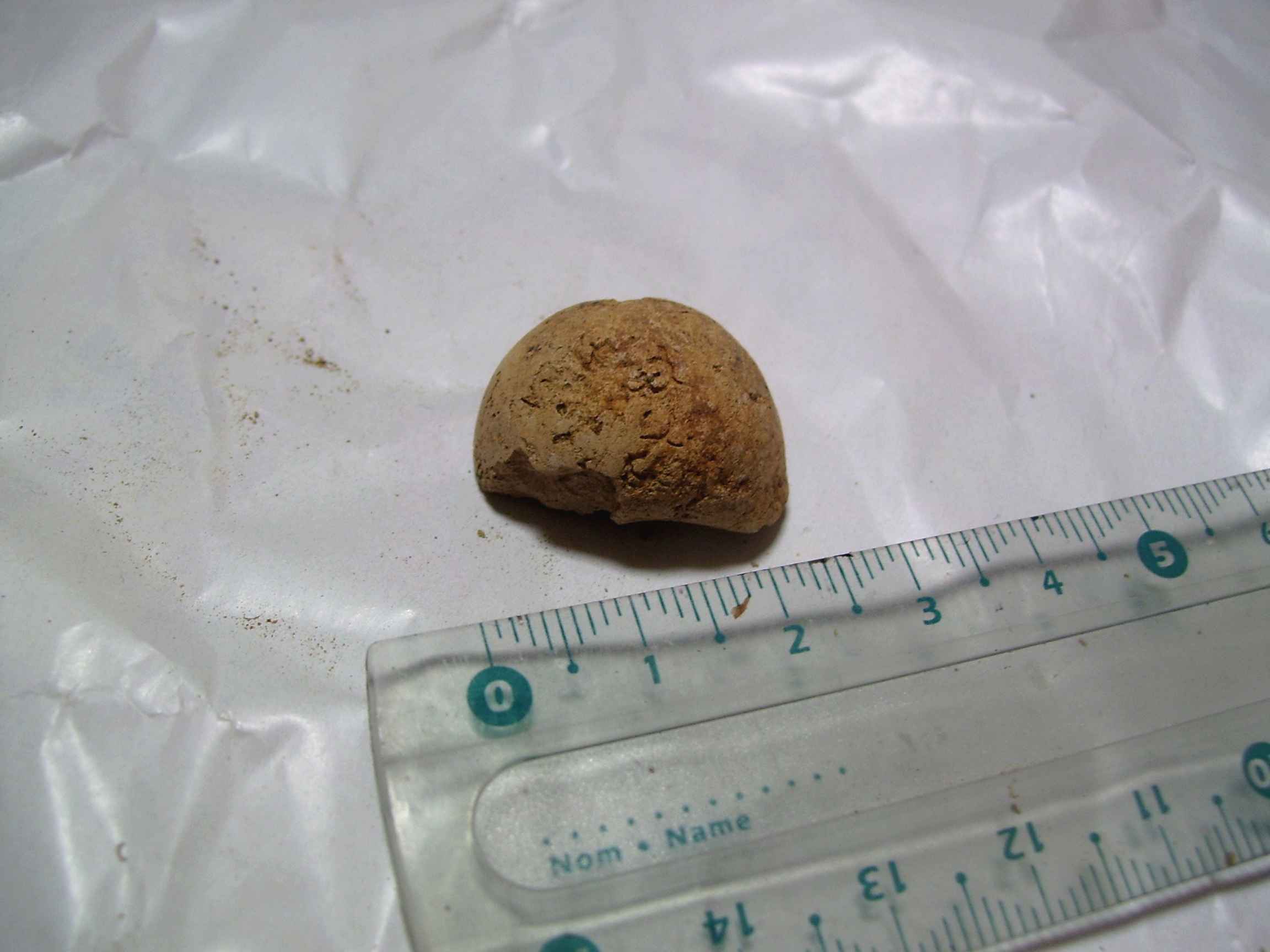 1) Pour les 2 premières photos, cette "chose" vient du cœur d'un bloc qui s'est brisé, j'ai pu l'extraire sans difficultés car elle s'est désolidarisée toute seule de sa matrice mais sa forme avec son sillon au bout me laisse un rien perplexe. Une idée?
