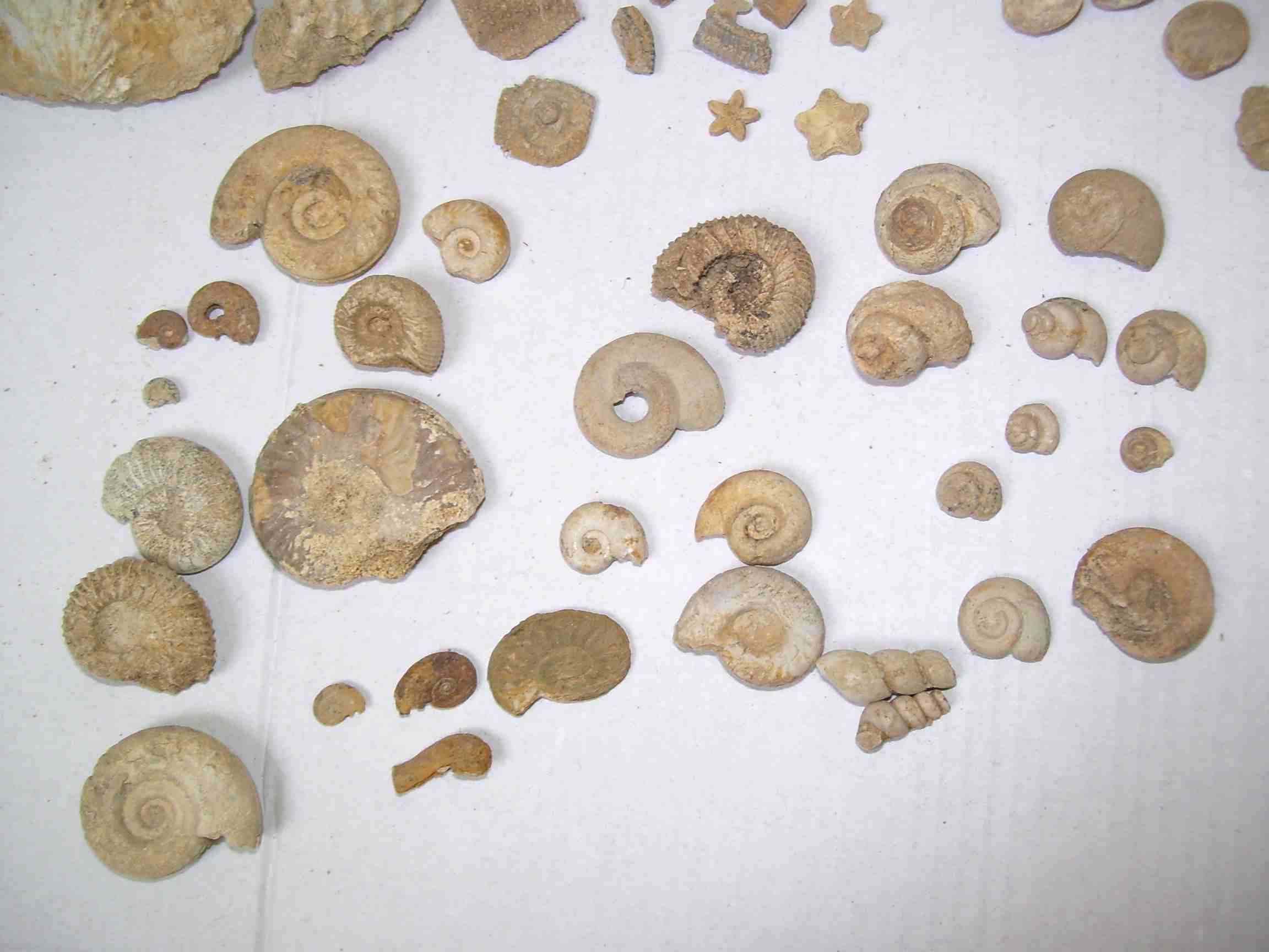 On trouve en vrac des ammonites, des bélemnites, des gryphées, quelques bivalves divers et quelques nautiles.