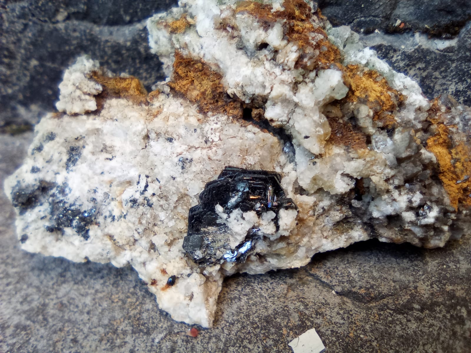 Titanite, 2 cristaux, 1 cm (Aiguilles de la Balme) dommage qu'il y ait la chlorite..