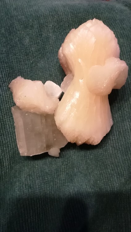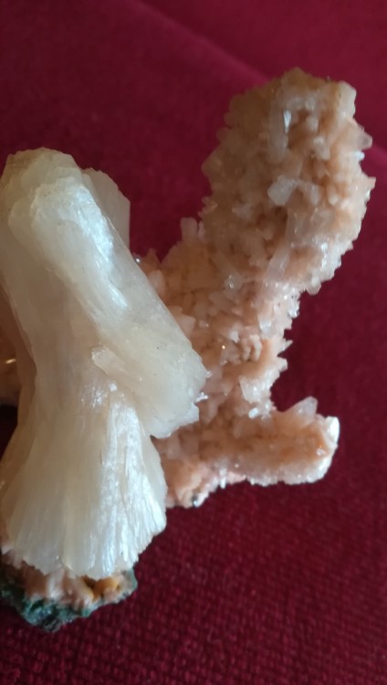 Bonjour tout est dans le titre Merci si vous voulez bien determiner le mineral qui accompagne cette piece de stilbite ou m aider a determiner.... heulandite? apophylite ? ok les photos sont pas top, je sais...