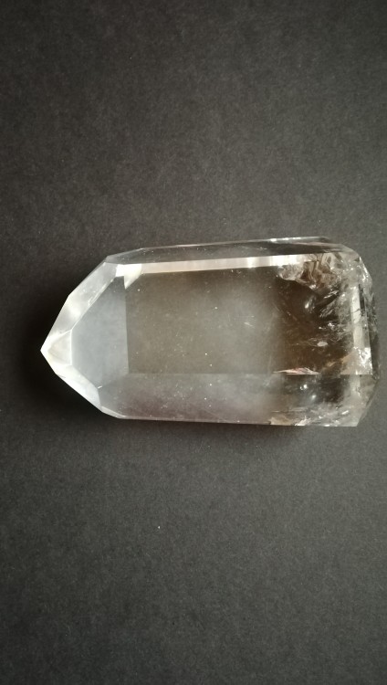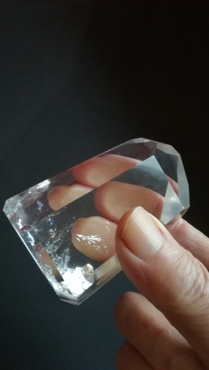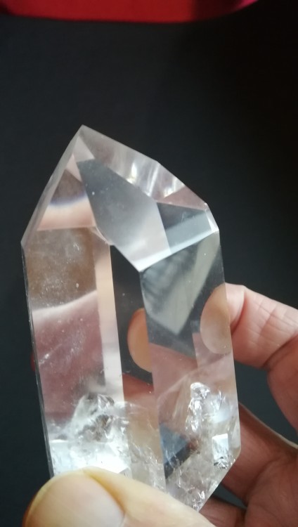 Bonjour Pas mal de question Quartz taillé ou totalement artificiel (verre ou autre) et dans ce cas inclusions(fantomes?)possibles a la base ? on dirait un specimen pour ecole quant a la morphologie..... Vos avis svp merci