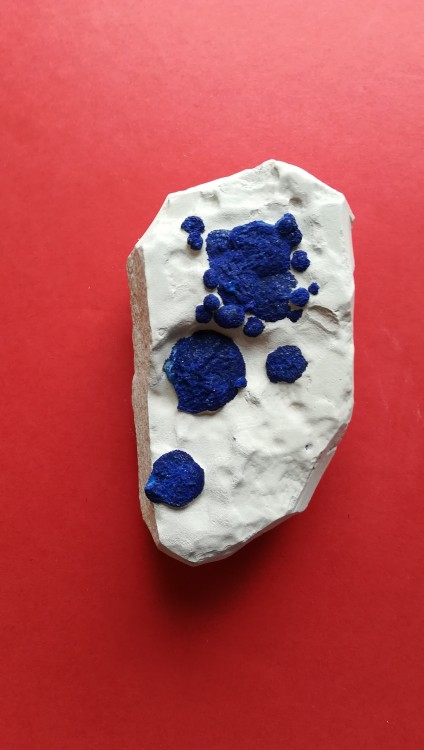 Bonjour , Je viens donc d acquerir une banale azurite Toutefois ,beaucoup de questions Cette piece me parait "trop parfaite " les pastilles d azurite semblent collées sur la matrice et d un bleu tres (trop) marqué quelle est la nature de cette matrice ? On dirait presque du platre... (indiquée comme" stilstone" ?) je sais bien que cette piece est plus spectaculaire que technique mais j aimerai bien lire vos commentaires merci Michel -