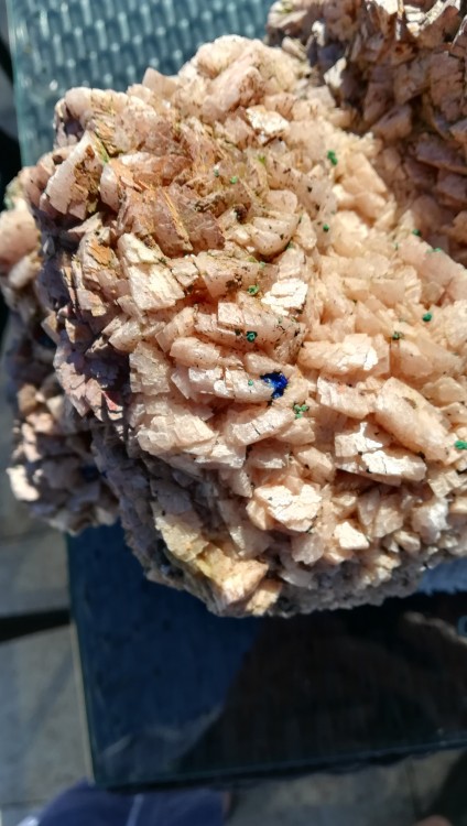 pour reprendre le meme sujet dolomite et ankerite sur la meme piece ? provenance maroc merci pour confirmation eventuelle a noter presence pointes d azurite et mala michel -