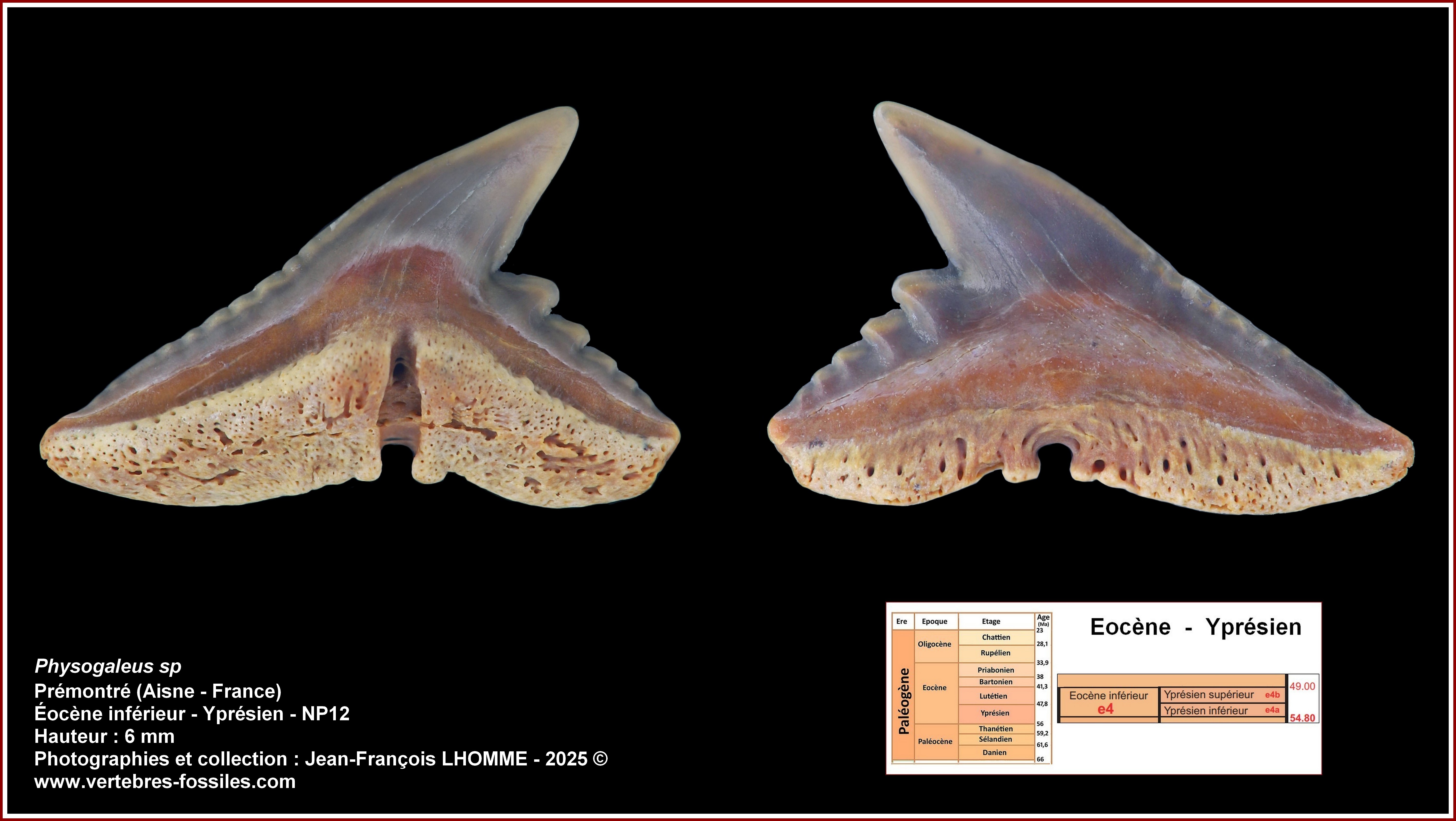 Pour celle ci je m'interroge, Physogaleus ou un autre genre ? en tout cas pas une Galeocerdo c'est certains par rapport à l'encoche au niveau de la racine et de la serration absente jusqu'à l'apex de la dent -