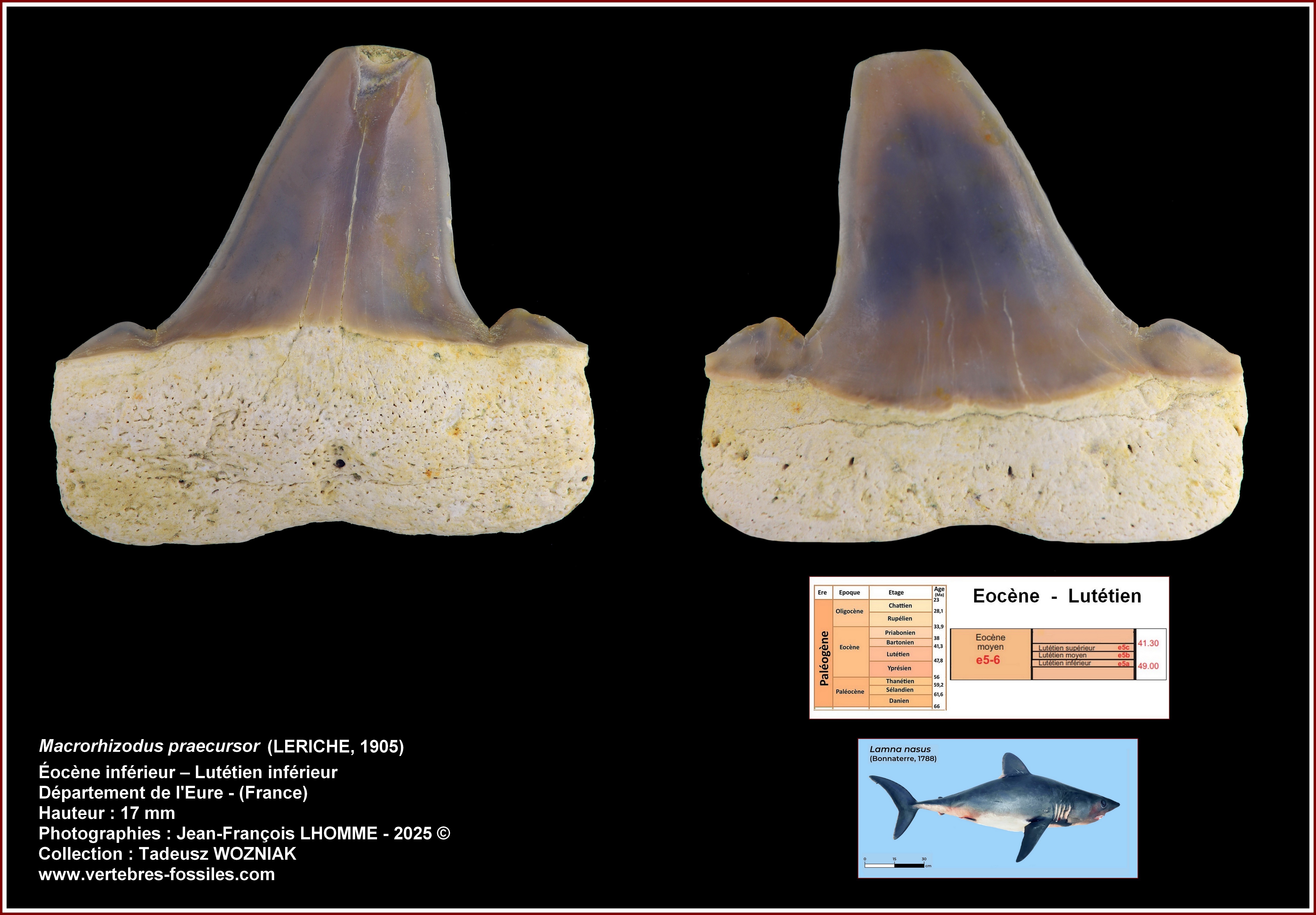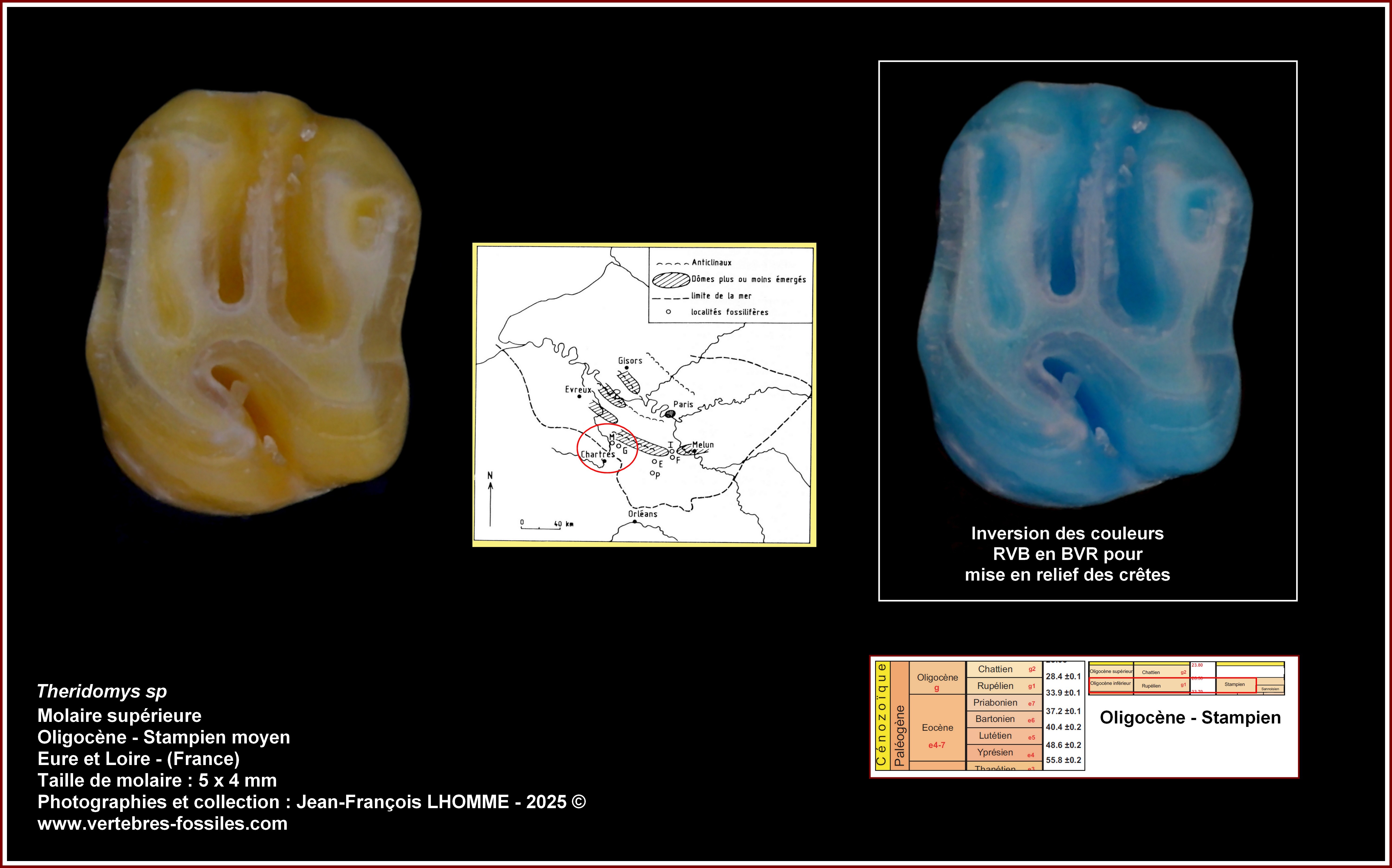 Dans cet exemple précis j'ai voulu mettre en évidence les crêtes de deux groupes souvent confondus, d'une part les molaires inférieures de Rhinocéros, et d'autre part les molaires inférieures de Lophiodon (Tapir au sens large).