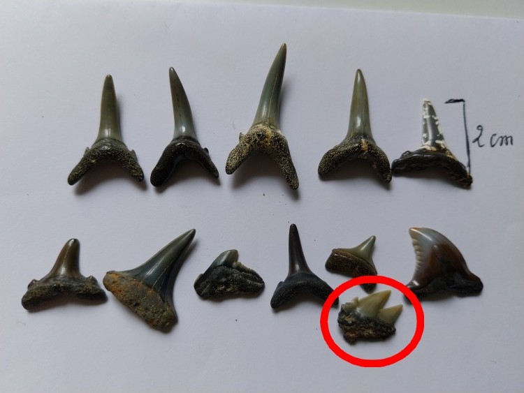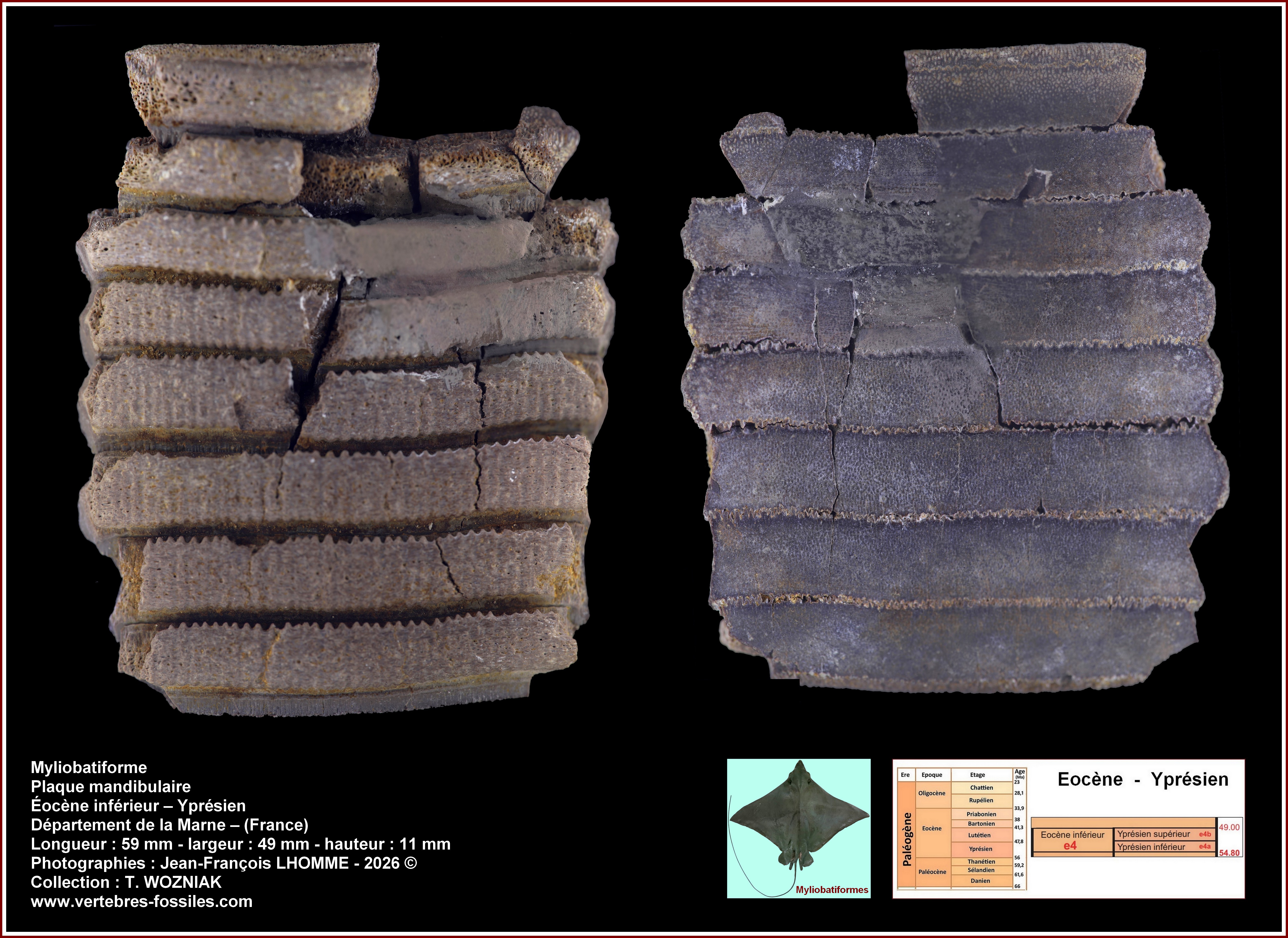 Il y a encore une autre partie appartenant au même spécimen (2 dents sur plaque mandibulaire, mais détachées de la partie principale).
