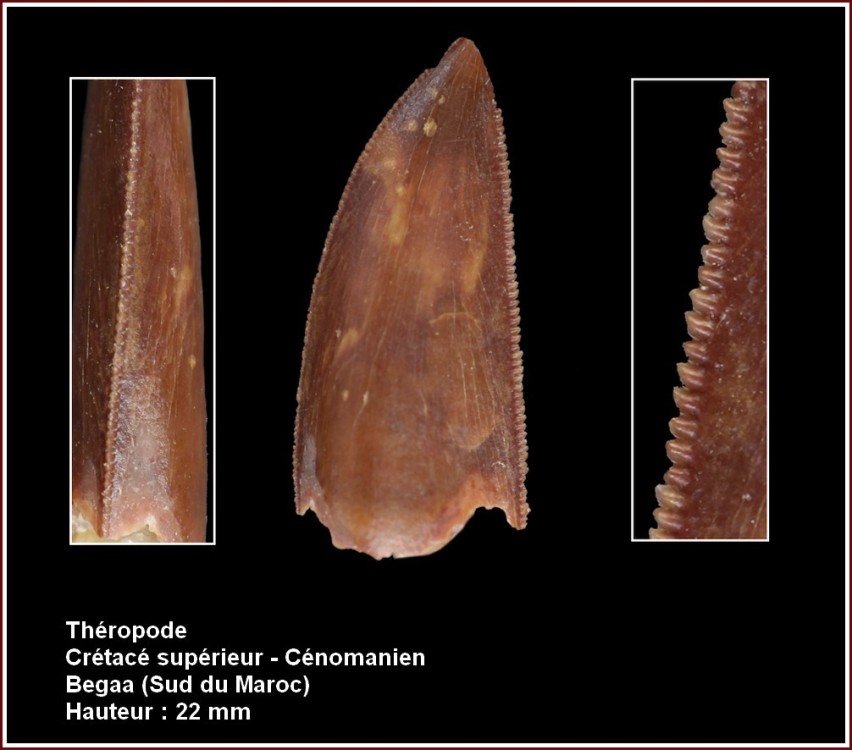 8. Bonsoir Franchement pas convaincu par Abelisauridae, si c'est indiqué Cénomanien c'est probablement que cela vient des Hamada Kemkem ? Pour exemple quelques dents que j'ai trouvé au Maroc dans la formation des Kemkem, proche de Taouz Parfois ce sont "simplement" des dents de Carcharodontosaurus de petites tailles