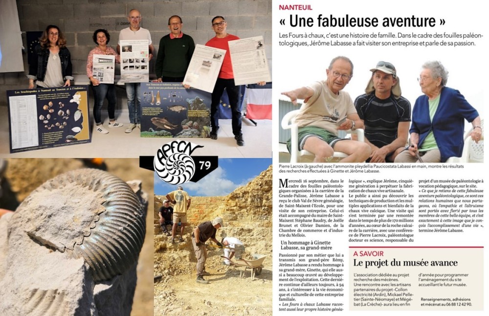 📢 Appel à contribution pour le futur Musée Paléontologique de Nanteuil : rejoignez-nous dans cette aventure unique ! Depuis 2013, l’Association Paléontologique des Fours à Chaux de Nanteuil (APFCN) et l’Entreprise Labasse & Fils collaborent main dans la main pour révéler les secrets géologiques et paléontologiques de la carrière de « La Grande Palisse » (Deux-Sèvres). C'est aujourd'hui un projet ambitieux qui prend vie : la création d’un Musée Paléontologique dont l’inauguration est prévue pour juin 2026 ! ✨ Pourquoi ce musée est-il spécial ? Il repose sur la passion commune de Jérôme Caillet Labasse, héritier des Fours à Chaux de Nanteuil, et de Pierre Lacroix, paléontologue. Ensemble, ils ont rassemblé une équipe de scientifiques et d’amateurs pour explorer un gisement calcaire datant de plus de 170 millions d’années (Bajocien) et, récemment, un second étage géologique encore plus riche (Aalénien). Ce projet s’étend au-delà des fouilles : il s’agit d’un véritable centre de valorisation des connaissances pour le grand public, les établissements scolaires, et la communauté scientifique. 🏛️ Le musée : 6 espaces d’exposition, 150 m² dédiés à la géologie et à la paléontologie Pour donner vie à ce lieu unique, nous allons aménager 6 salles thématiques : 1️⃣ Histoire de la carrière et de l’entreprise Labasse (famille, activité d’extraction et production). 2️⃣ Géologie de la carrière : contexte stratigraphique et paléogéographique. 3️⃣ Étude paléontologique du site et objectifs scientifiques. 4️⃣ Exposition des fossiles de l’Aalénien et du Bajocien. 5️⃣ Comparaison régionale, nationale et internationale avec d’autres sites similaires. 6️⃣ Espace pédagogique pour les jeunes visiteurs. 💡 Votre soutien est essentiel Pour mener à bien l’aménagement des salles (vitrines, panneaux d’exposition, éclairage, supports pédagogiques), nous avons besoin de votre aide ! En participant à ce projet, vous contribuerez à préserver un patrimoine unique et à le rendre accessible à tous. 📅 Inauguration prévue : juin 2026 🎯 Objectif de la collecte : financement des équipements muséographiques et scénographiques. 👉 Comment aider ? Chaque don, chaque partage nous rapproche un peu plus de l’ouverture de ce musée. Ensemble, nous pouvons créer un lieu d’apprentissage, de partage et de découverte pour les générations futures. Lien vers la cagnotte : https://www.helloasso.com/associations/association-paleontologique-des-fours-a-chaux-de-nanteuil-apfcn/collectes/musee-apfcn-session-2024-amenagement-des-6-salles-d-exposition?fbclid=IwY2xjawFqogtleHRuA2FlbQIxMQABHUQtGKwS4JEVAMjemSfPhAZBj1ltG0takDfct4SPORIfFYBmyGxd1ETRDA_aem_Jdz0DBVcuOIiXE4dIDjTug 🖋️ Rejoignez-nous dans cette belle aventure ! Un projet porté par : 🔹 Pierre Lacroix, paléontologue et président de l’APFCN. 🔹 Jérôme Caillet Labasse, gérant de la carrière et mécène. Et toute une équipe de passionnés, paléontologues amateurs et professionnels, prêts à vous faire voyager à travers 170 millions d’années d’histoire géologique ! Aidez-nous à faire de ce musée une réalité : votre soutien est la clé pour préserver ce patrimoine paléontologique exceptionnel ! 🔎🌍