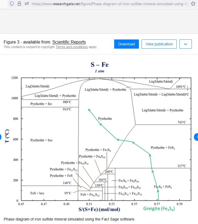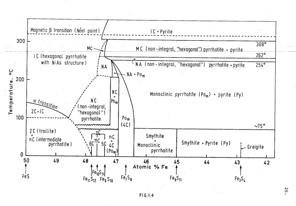 Puisque certains géoforomeurs s’inquiètent de la prolifération de sujets parasites, je propose d’en revenir à la question initiale concernant la pyrrhotite. Le problème soulevé par @Géomac est beaucoup plus profond qu’il n’y paraît. Divers document rencontrés sur le web le confirment. Celui qui me semble le plus complet est la thèse de David Clark de l’ université de Sydney. https://confluence.csiro.au/display/cmfr/Theses?preview=/338723802/338724213/Magnetic_Properties_of_Pyrrhotite_Clark MSc_1983.pdf Il montre bien que la pyrrhotite doit être considéré comme un groupe de minéraux. C’est aussi ce que l’on retrouve dans Mindat qui précise bien que la pyrrhotite présente plusieurs polytypes correspondant à des stoechiométries légèrement différentes. Parmi eux, seul Fe7S8 est cité dans Mindat sous le nom de « pyrrhotite-4C » : https://www.mindat.org/min-40439.html Clark montre qu’à partir d’une structure hexagonale on peut construire une superstructure orthorhombique voire même une légère distorsion monoclinique. C’est le nombre et la répartition des lacunes de fer qui fait pencher vers l’un où l’autre cas. Tout aussi intéressant est le diagramme de phase du système binaire fer-soufre. Il est toutefois très incomplet et les transitions ne sont pas élucidées. Un diagramme plus explicite peut être trouvé ici : https://www.researchgate.net/figure/Phase-diagram-of-iron-sulfide-mineral-simulated-using-the-Fact-Sage-software_fig3_333428637 Ce diagramme a été calculé et non pas déterminé expérimentalement. Il permet néanmoins de mieux comprendre les relations entre les différentes phases. À haute température, la pyrrhotite forme une solution solide assez large qui va de FeS à Fe7S8 et même un peu au-delà. À basse température, en revanche, il y a démixtion complète faisant apparaître diverses phases stables : FeS, Fe11S12, Fe10S11, Fe9S10 et Fe7S8 avec un empilement de péritectoïdes. Ce n’est pas précisé mais on peu supposer que la solution solide correspond à une répartition aléatoire des lacunes de fer. À basse température, on revient très logiquement à des répartitions plus ordonnées des lacunes. La question se pose ensuite de savoir ce qu’il en est de la pyrrhotite naturelle. S’agit-il d’une phase unique de haute température conservée de façon métastable ? Peut-on s’attendre à une démixtion par refroidissement conduisant par exemple à une disposition lamellaire ? Est-ce que les divers polytypes peuvent se former à basse température à partir d’une solution hydrothermale ? Clark passe en revue divers gisements de pyrrhotite et montre que l’on peut trouver des amas de pyrrhotite hétérogènes. C’est en particulier le cas d’Elura en Australie, Nouvelles Galles du Sud, avec une intercroissance de divers polytypes. Non, la remarque de Géomac n’est pas une connerie. Elle est tout à fait pertinente. L’expression « mélange de plusieurs sulfure de fer » n’est peut-être pas très bien choisie mais le phénomène qu’il souligne est bien réel et correspond à l’ intercroissance de cristaux de stoechiométries différentes décrite par Clark.