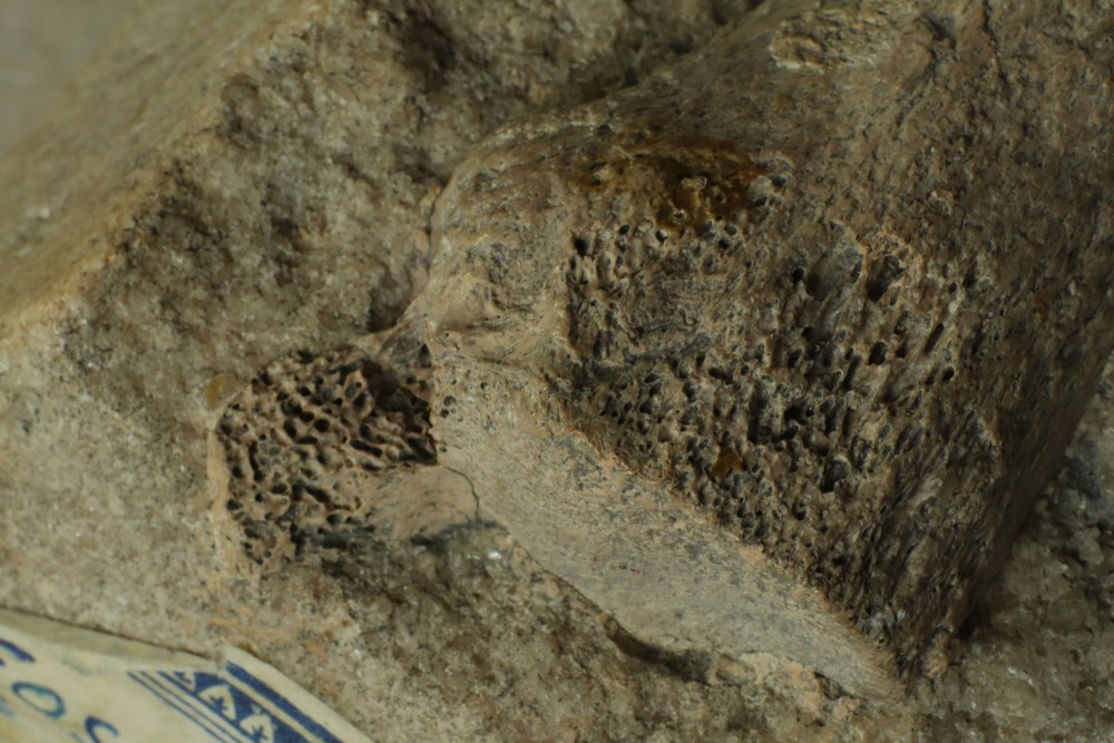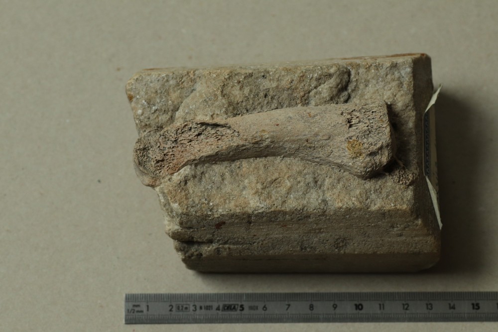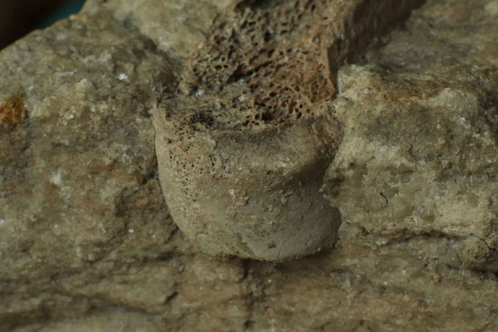 Bonjour à tous les fossileux, je vous soumets une question à laquelle je suis incapable de répondre. Cette pièce appartient à une connaissance qui aimerait savoir de quelle bestiole il s’agit. Cet os a été découvert il y a longtemps, alors que les carrières de Romainville (93) étaient en exploitation. La pierre semble principalement constituée de gypse. Elle est assez tendre, pas d’ effervescence avec HCl. Auriez-vous une idée ?