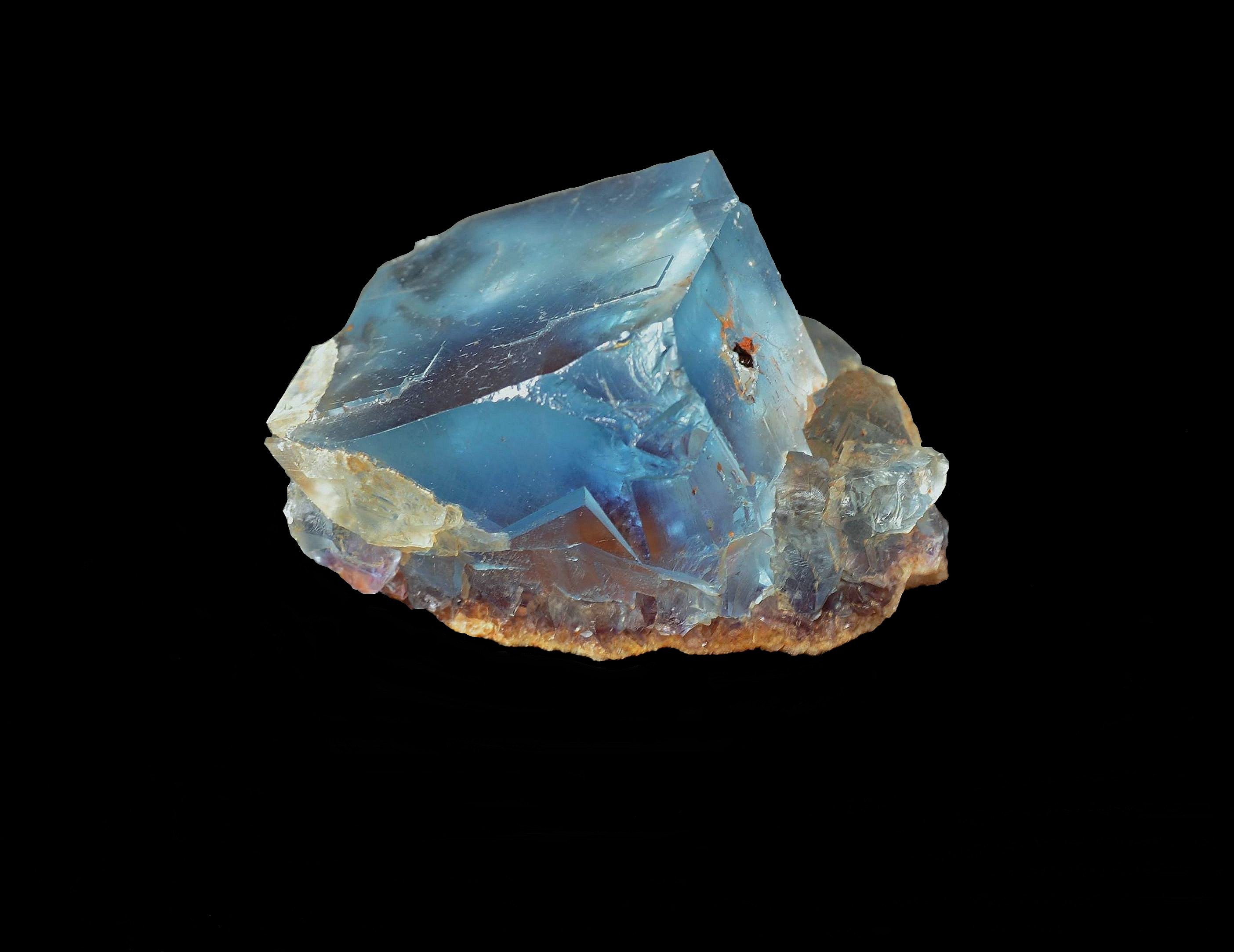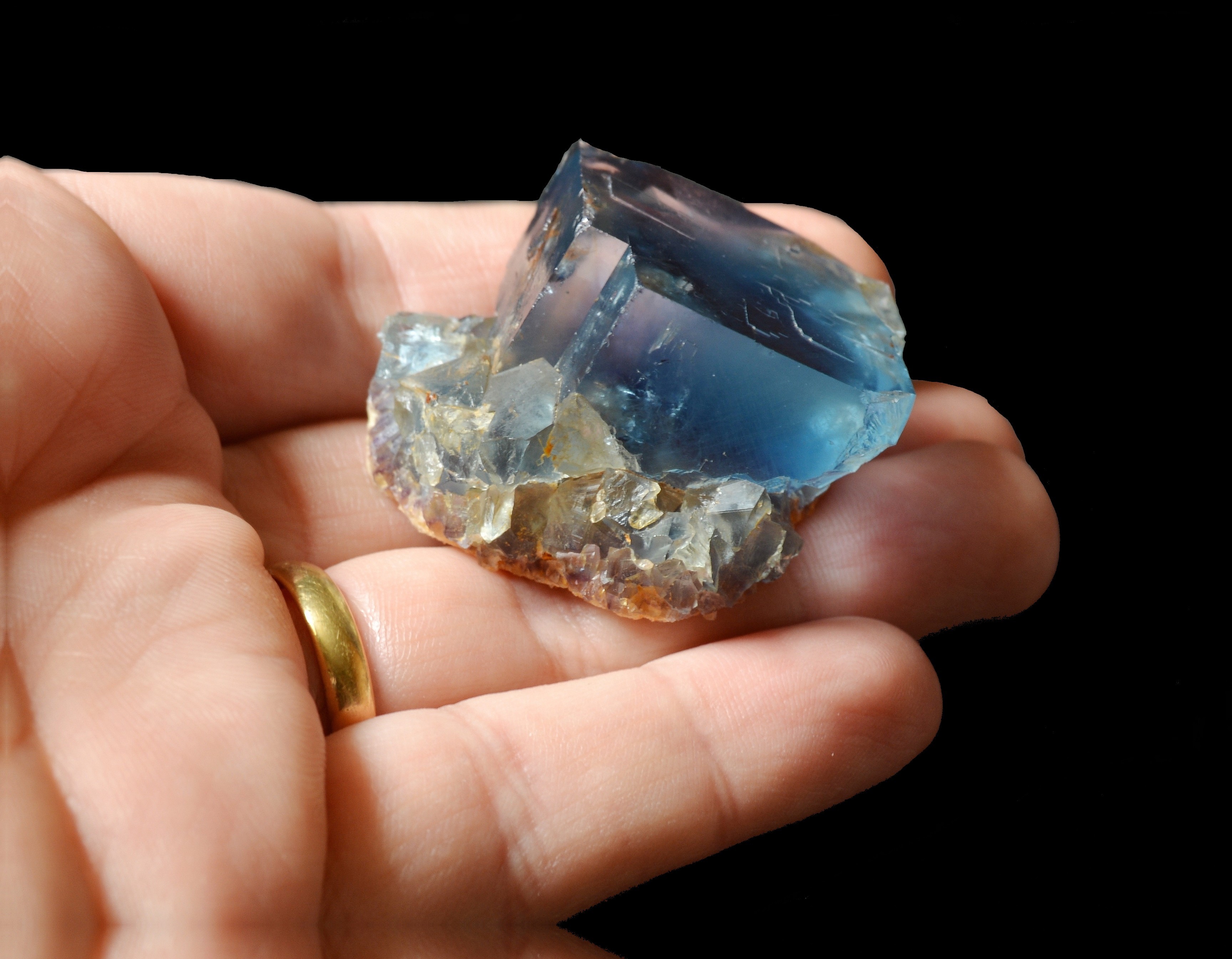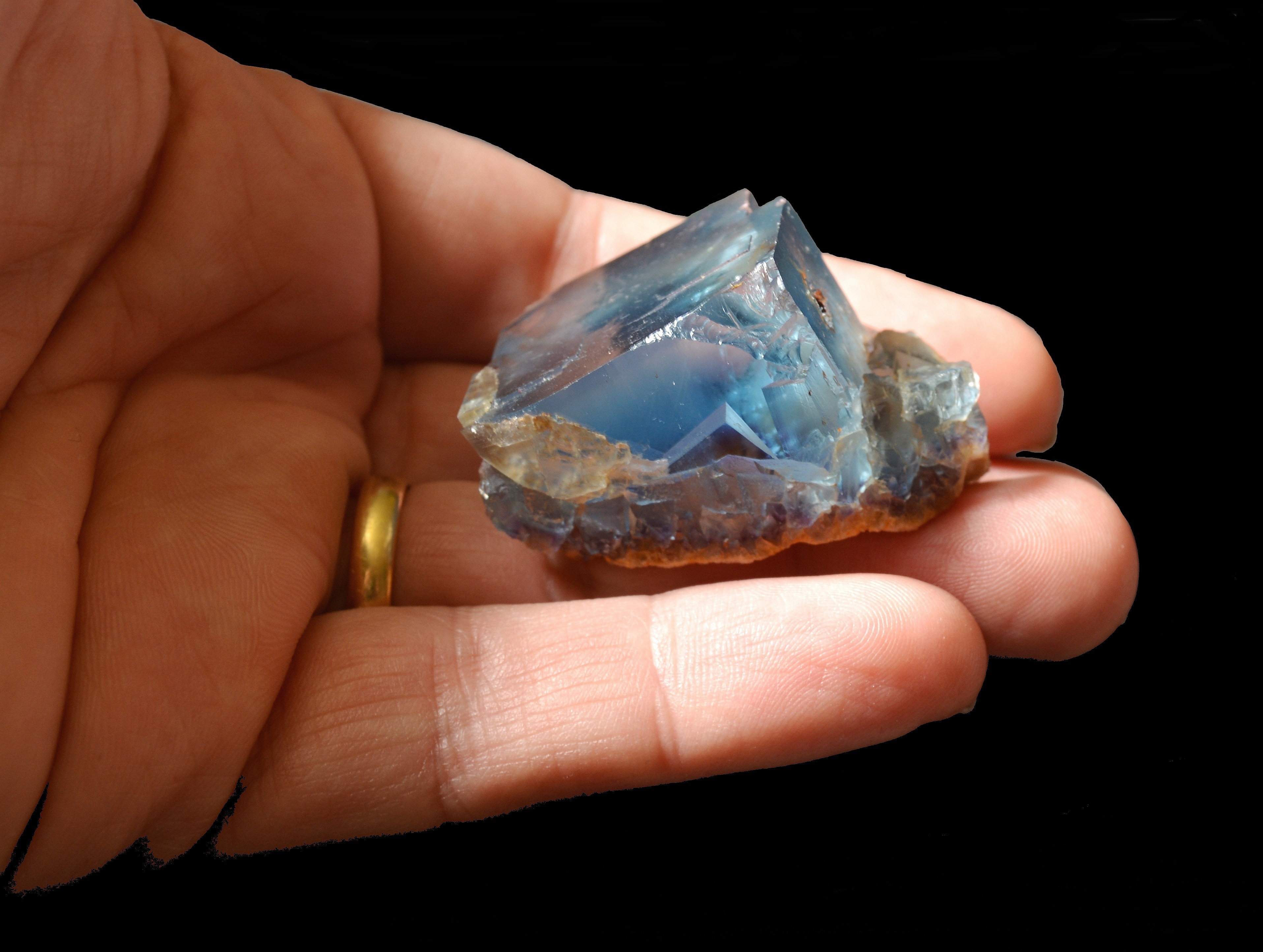 Merci AMEDE, c'est sympa👍! -287-Dernière acquisition, Fluorine (4.3x2.5cm) de la Mine du Beix. Echantillon ramassé par un mineur dans la zone de triage ce qui explique que le cube est rogné de partout, mais la couleur est là. -