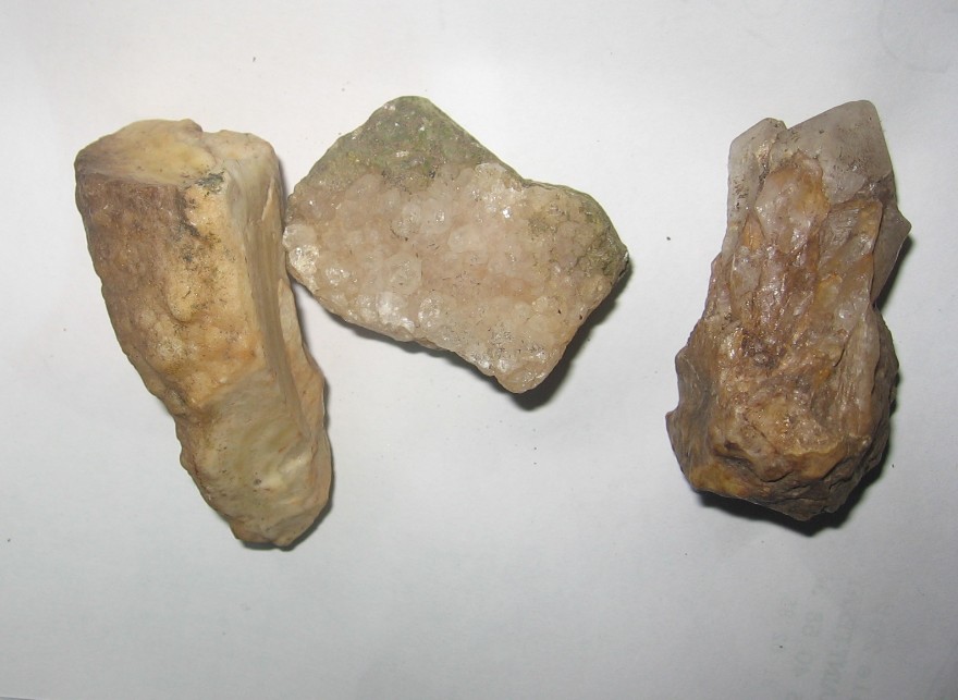 oui il y a des tas et des tas de pierres blanches et 5-6 pierres avec des petits cristaux de quartz, et 20 30 pierres prises au hasard etaient des parois de grotte. le relief signale aucun trou important. mais pas de metaux... a 10km de ce site la au bord de la riviere cance il y a une mine de baryte avec des rares petits crystaux de plomb bleu, et ils on percé un grand trou dans la colline de 7-8 metres de long, 5 metres de haut, avec de l eau au fond... en effet, il n'y a pas vraiment de grottes dans cette partie de l ardeche, la roche est du gneiss gris qui rougit en surface avec amphibole et feldspar et autres, du metamorphique, par endroits des petites fissures dans la roche, peut etre relatives a la formation des alpes, ont etees innondees par les eaux chaudes sont toutes remplies de baryte, quartz et du plomb et tres peu d autres metaux. il y a de nombreuses mines de baryte et de plomb, des veines de plomb de 20-30 metres de long et 2-3 de large, toutes les memes, il y a 20 anciennes mines autour de annonay. mais ce site ci est sympa car il reste des parois calcaire de grotte, autour la roche mere est du metamorphique orange qui se petri en sable, toute la region est un sable beige orange, et les valees faites par les rivieres datent de la fin de la formation des alpes, cest a dire 30mn annees a peu pres. apres en foret j'ai decouver une roche de quartz de 2 tonne ronde a coté d un chemin qui est une anomalie dans la roche mere, dans les plantations de douglas, mais c est tout ce que la region me donne, moi je veux de lor. :(