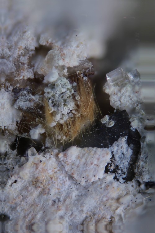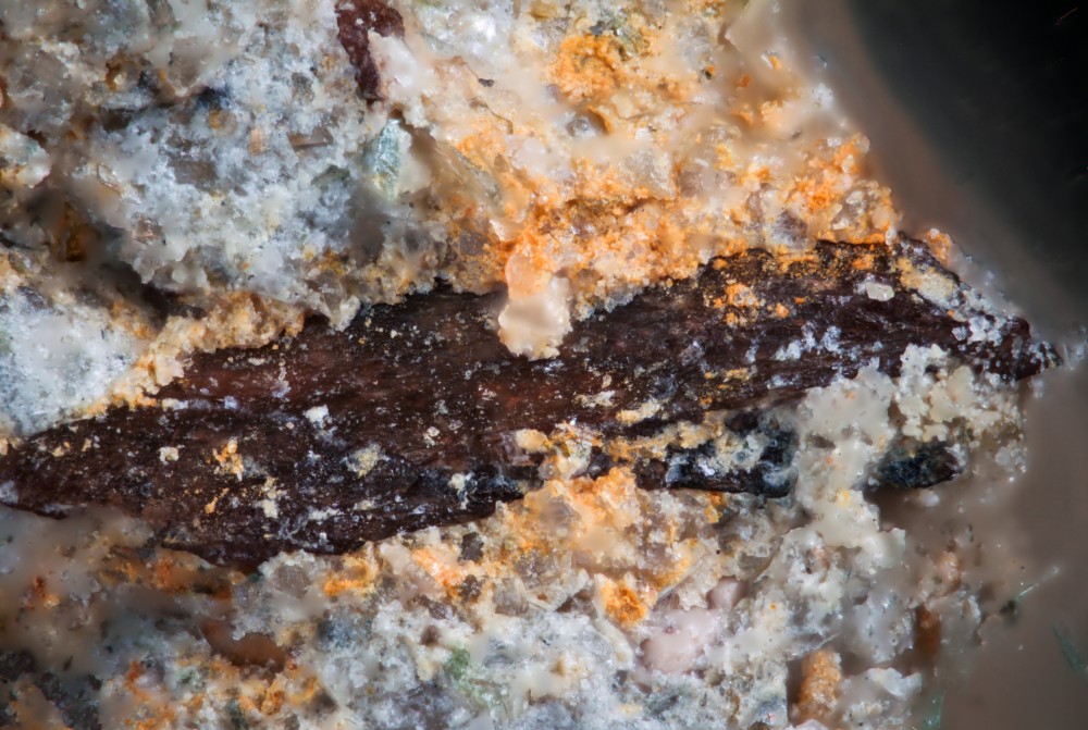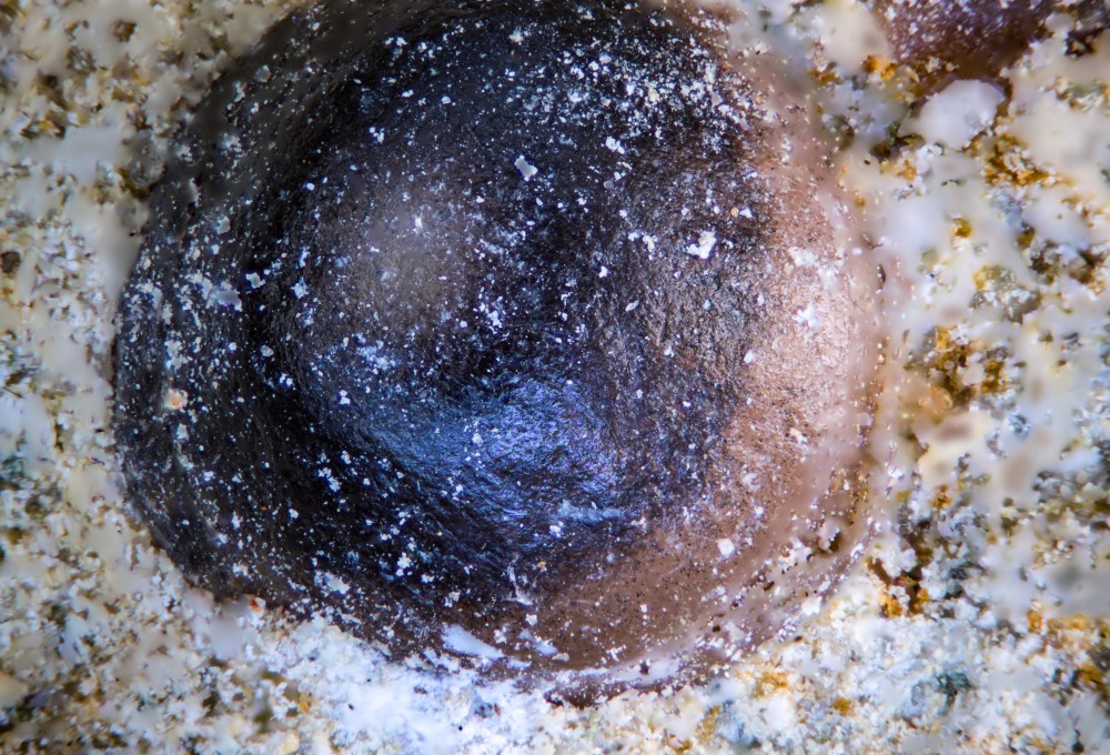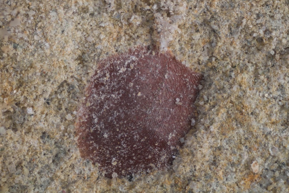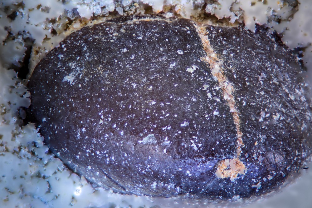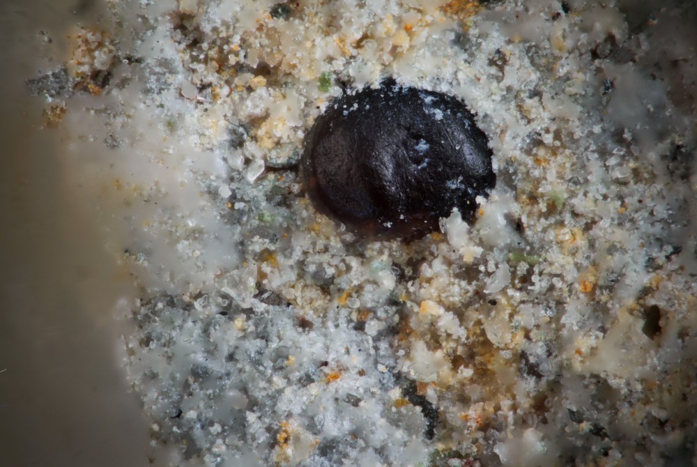 - 2) Et pleins d'autres petits morceaux de tailles plus ou moins similaire (02mm) "qui sautent" facilement. j'en ai perdu qq'uns en grattant à l'aiguille sans trop connaitre la fragilité. Je ne les touchent plus ! Ce serait étrange d'avoir la même identification ! Ces trouvailles étaient au même endroit, dans la partie du banc beaucoup plus riche en microfaune grise ou jaune...