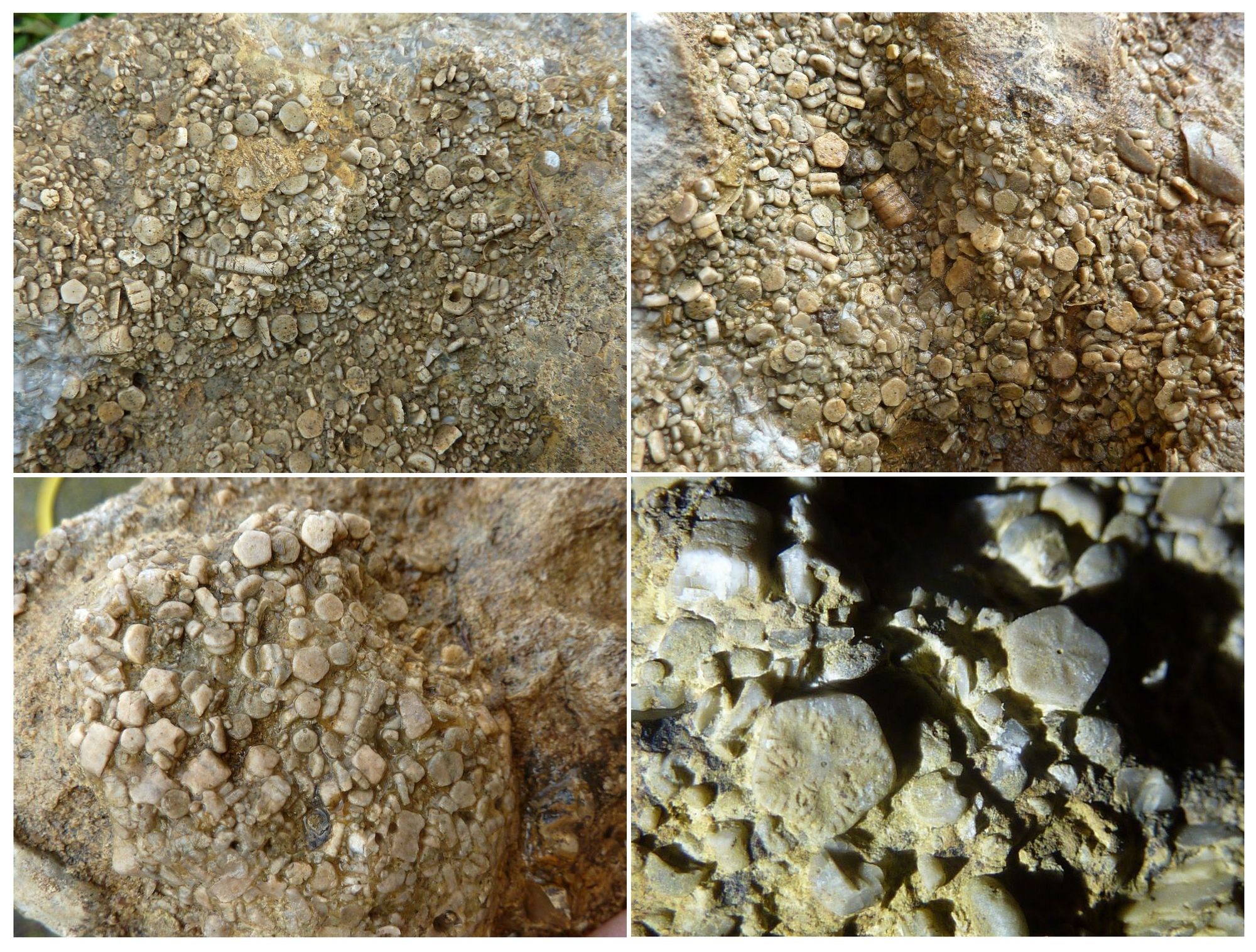 Oups ! Désolée pour le retard. Frasnien - Famenien inférieur : Calcaires bioclastiques, Gilly sur Loire, Saône et Loire Articles d'encrines, coraux, morceaux de bivalves et de brachiopodes... blocs sciés et polis, découvertes 2017 -