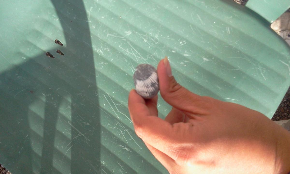 1. Avec le tel. C'est pas mieux question qualité! elasmo. Tu remarquera que j'ai changé de table :-) Mais bon, comme le dit Kayou, sur un galet faut que j'oublie l'idee de connaitre l'age de la bête.