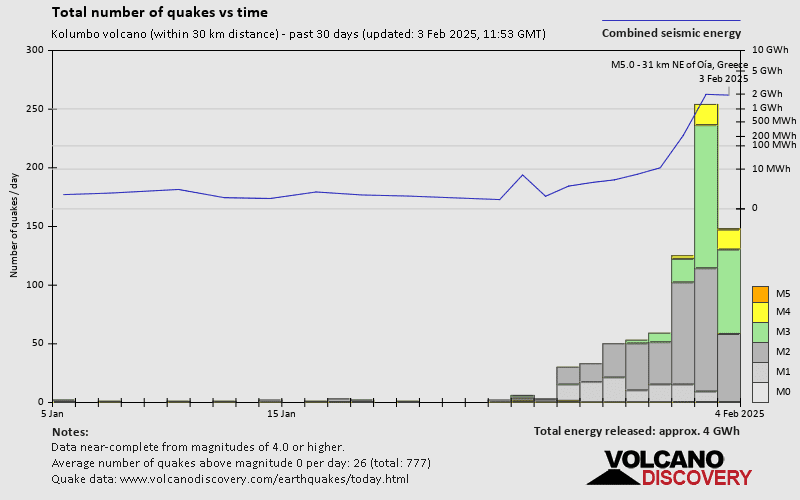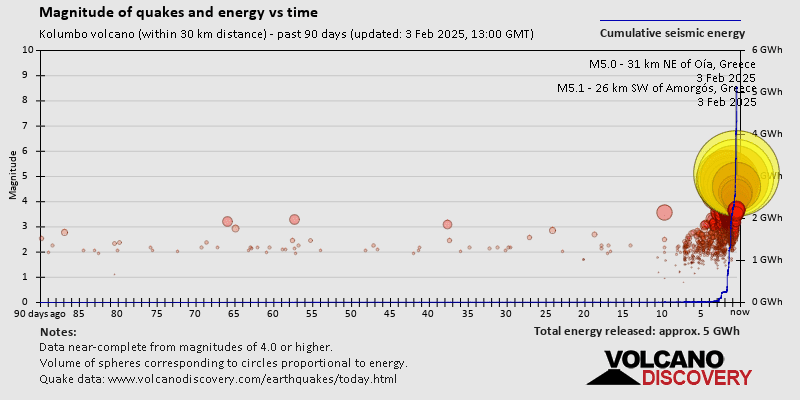 Ces tremblements de terre ont cessé au bout d’une heure et demie, mais ces tremblements de terre étaient clairement, clairement, clairement volcaniques. Une éruption volcanique s'est produite, qui a été, selon les sismologues, très, très bruyante. « Cela indique qu'il s'agit de tremblements de terre purement volcaniques », a déclaré Costas Synolakis, professeur de catastrophes naturelles et universitaire à l'Université de Californie.