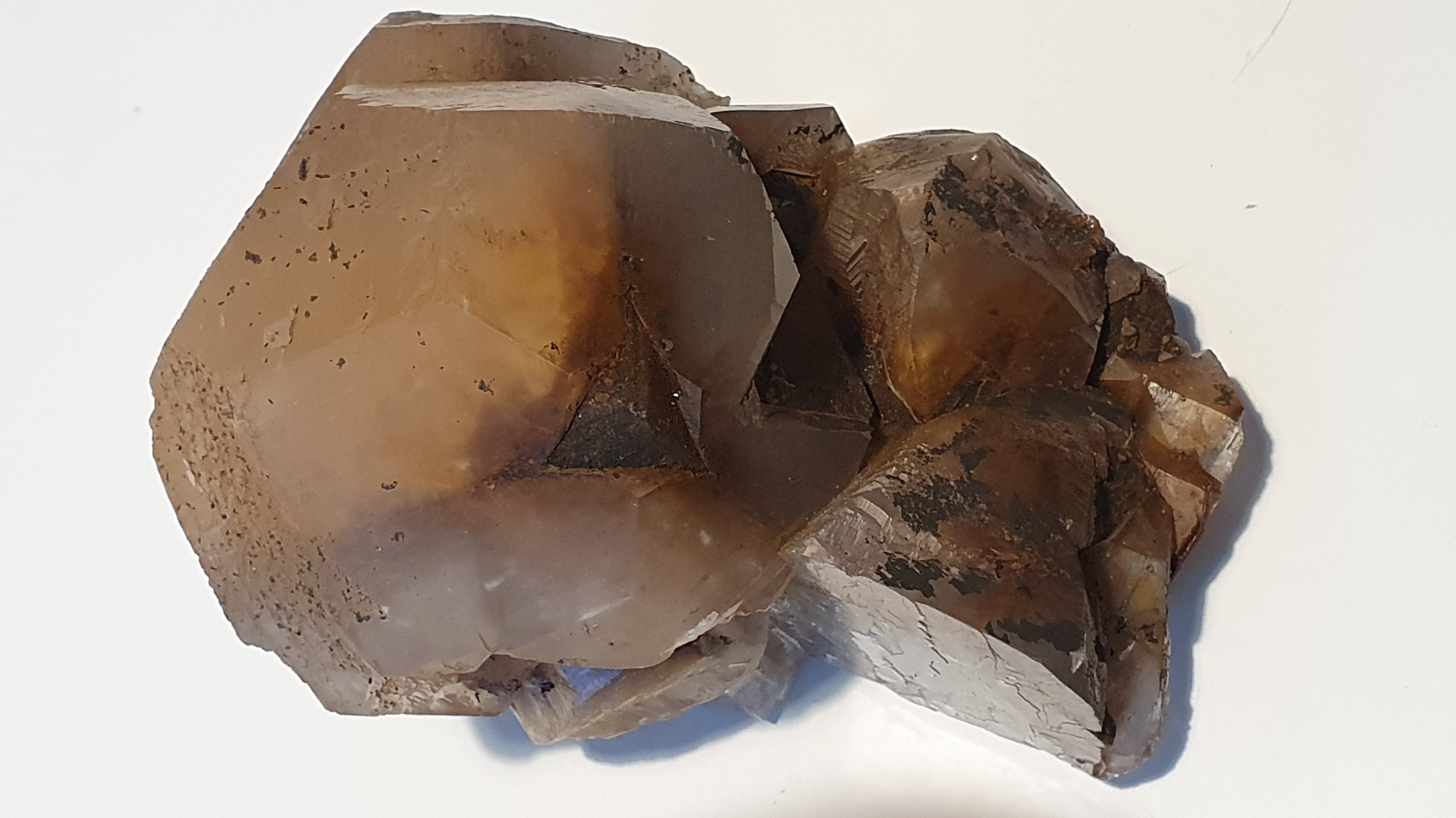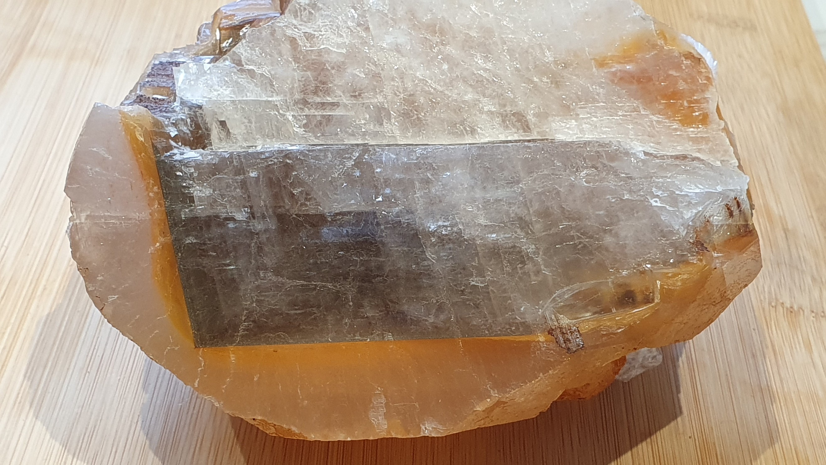 Je continue avec mes chinoiseries : calcite, désignée "Calcite Benz". Provenance donnée : Chine, Hunan, rien de plus. Rayé par l'acier, effervescence au vinaigre, légère fluorescence aux UV. La première 14x10x7cm et l'autre 13x13x6, toutes les deux plus d'un kilogramme. Mais qu'est-ce que la partie recouverte par la calcite ? Ancienne pyrite ?... Je vous laisse quelques photos des deux pièces que j'ai achetées, et si vous le voulez, un lien qui mène à une vue 3D réalisée par l'application Kiri Engine : https://www.kiriengine.app/share/ShareModel?code=UGYFIW&serialize=be841b323e664901869c4df6ebdad6d9 et https://www.kiriengine.app/share/ShareModel?code=UGYFIW&serialize=fd51e1da612048ce9e9b7c0eef43d7ef On peut zoomer avec la molette de la souris et faire tourner la vue sur les 3 axes.