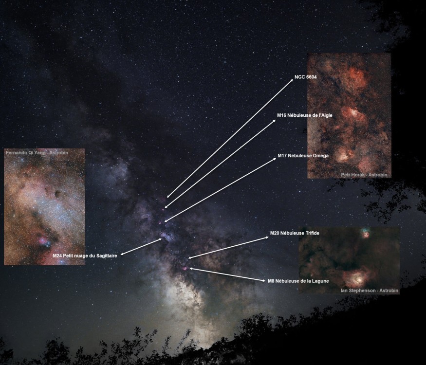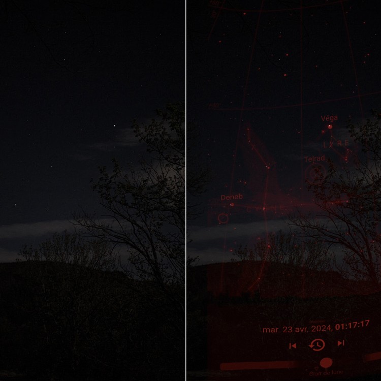 Le 3 mai 2024, après 6 jours de pluie consécutifs, le ciel héraultais était lavé de toute poussière. La voûte céleste pouvait accueillir dans toute sa splendeur la majestueuse Voie Lactée ... Voici quelques photos prises cette nuit. Chaque vue résulte d’un empilement d’une dizaine de poses de 8 secondes avec un A7S défiltré refiltré Astrodon par Richard Galli et un Samyang 18mm, Siril et Photoshop. J’ai assemblé grossièrement ces vues pour réaliser un panorama qui donne une idée du spectacle. -