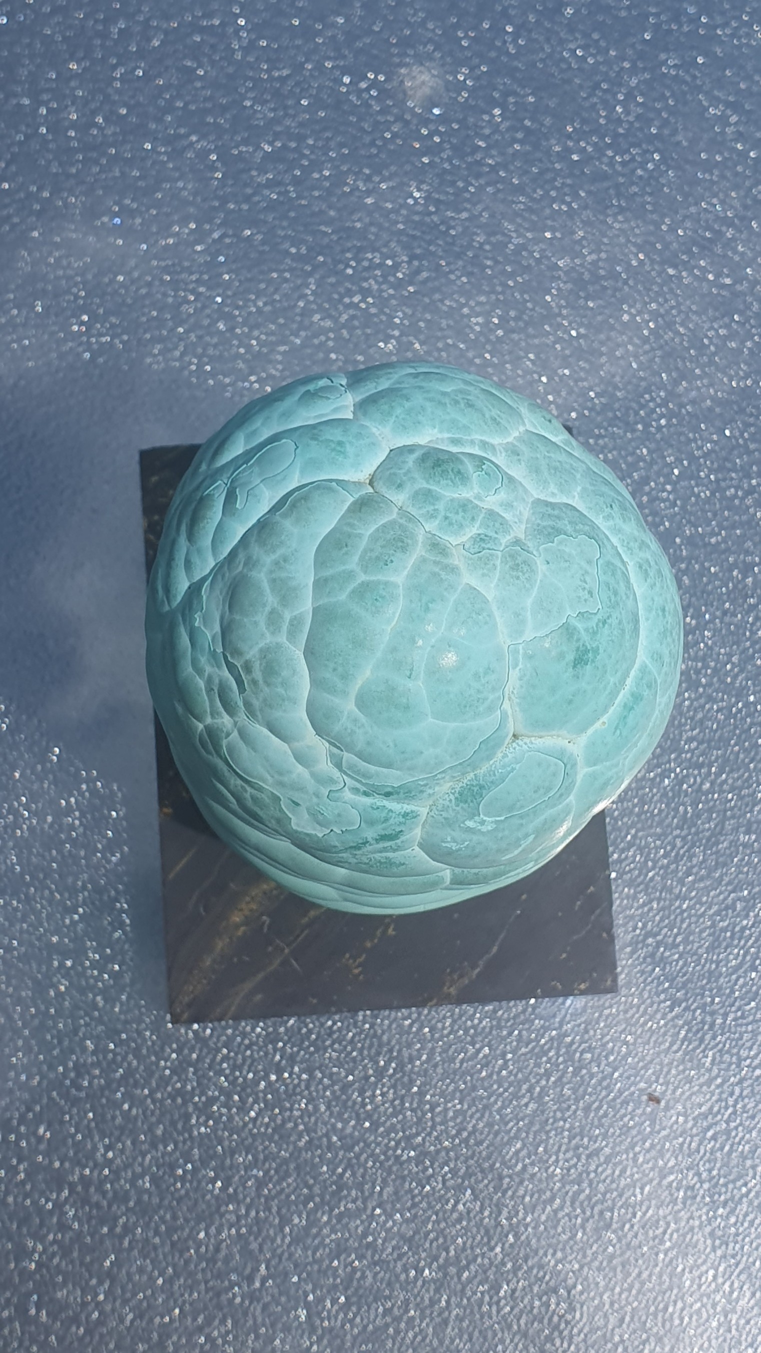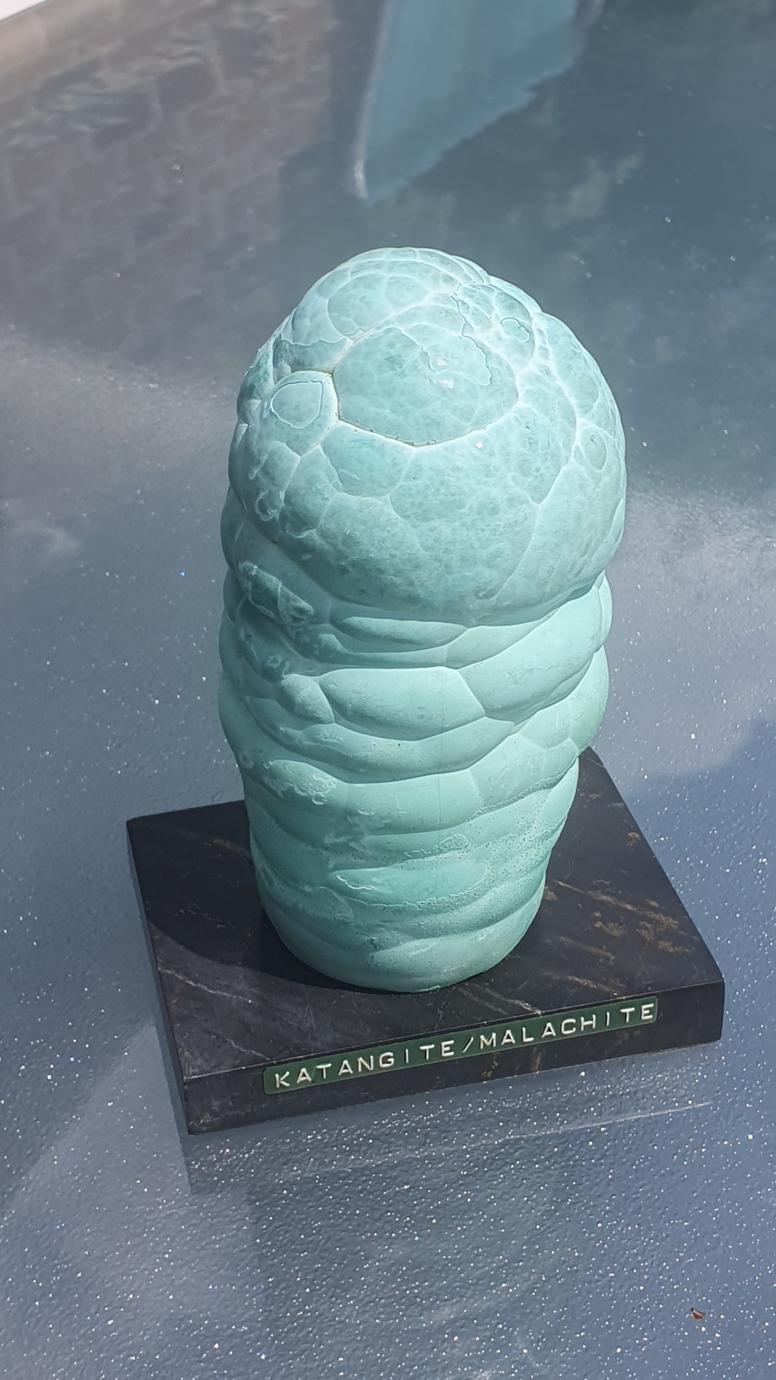 J'ai reçu hier ce cadeau, en provenance d'une ancienne collection, sans plus de renseignements que l'étiquette : katangite - malachite. J'ai lu que katangite renvoyait à planchéite/chrysocolle... Est ce quelqu'un parmi vous pourrait m'en dire plus ?
