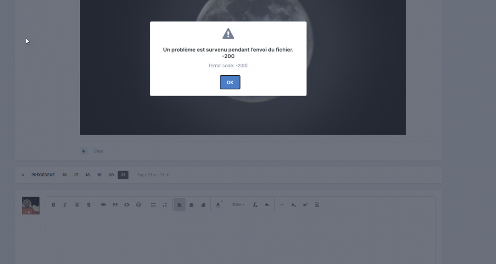 Bonjour, J'ai essayé de charger une photo (d'abord 3.3M puis réduite à 2.3M) et je n'y parviens pas, le site me retourne un code erreur -200. Est-ce la taille qui serait encore trop élevée (3 mégas, ça n'est pas énorme..) ? -