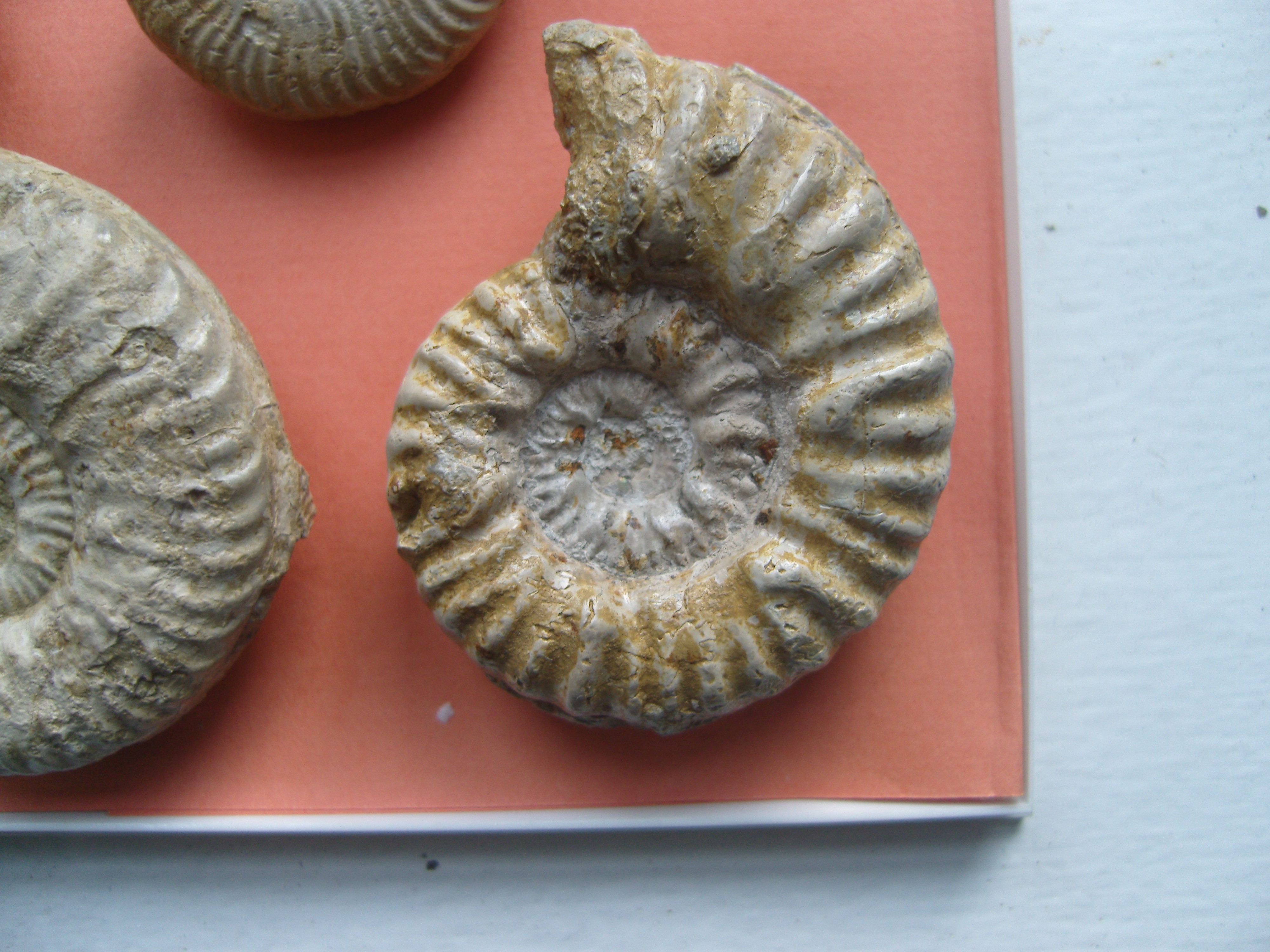 Bon , je crois que je vais m'arrêter au genre Podagrosites . Pour le Catacoeloceras , ce spécimen de 41 mm de diamètre présente bien un ventre lisse à partir du diamètre 35.5 mm soit au niveau de sa plus grande épaisseur (18.5mm) ; même si la chambre d'habitation n'est pas complète, il y a bien un resserrement (épaisseur de 16 mm à 41 mm) . Après j'ai dit une bêtise: il est effectivement trop épais pour dumortieri . Ressorti de sa boite et remesuré , réétudié avec "les Dactylioceratidae du toarcien inferieur et moyen de Louis Rulleau , Pierre Lacroix, Marc Bécaud et Jean Pierre Le Pichon cette récolte de 1995 devrait pouvoir être déterminée (Cela me donne une idée de sujet genre histoire de détermination vue par un amateur!) Ceci dit dumortieri semble (si j'étais plus jeune je dirais est) bien présente: voici les dimensions ( en attendent la photo) d'un exemplaire Diametre45, épaisseur maxi 17 (15 hors côtes) ,13 à l'ouverture , ombilic 22 mm ,hauteur de 12 avant étranglement . individu légèrement déformé, ventre devenant lisse sur le ventre sauf près de l'ouverture où deux cotes réapparaissent.