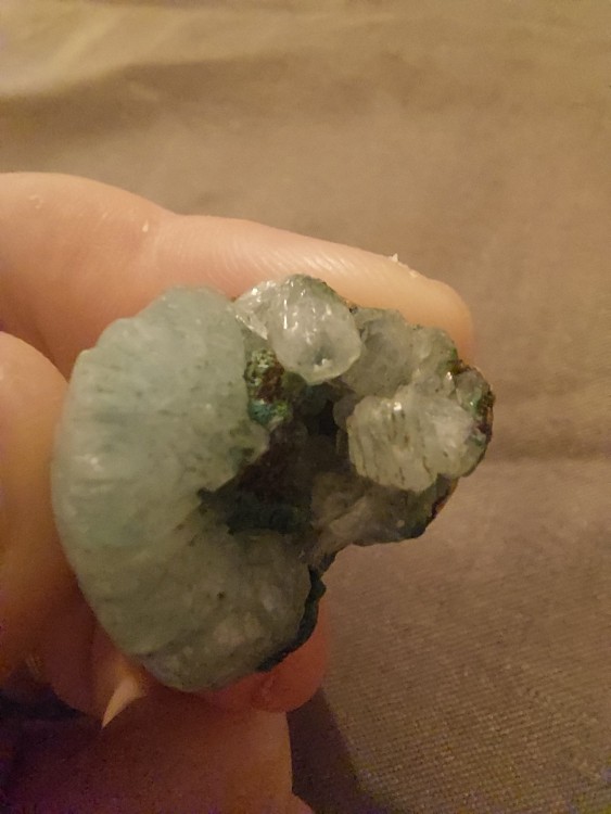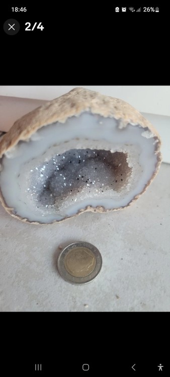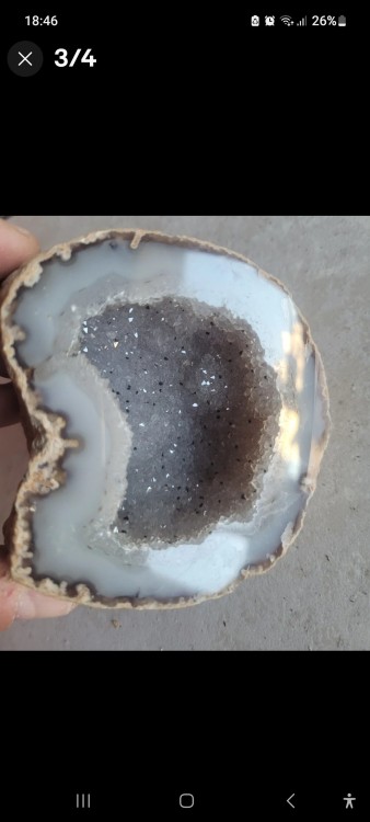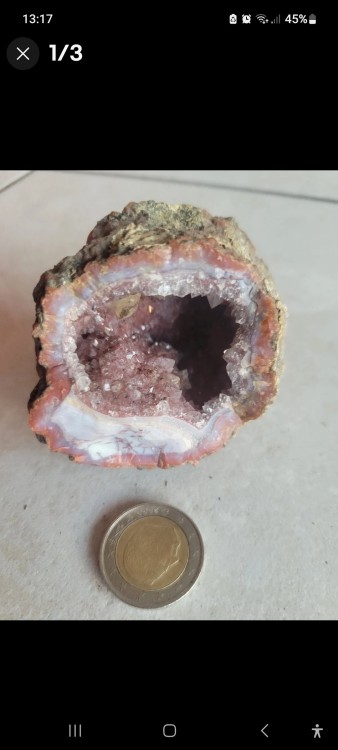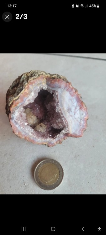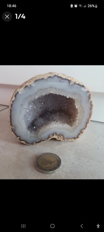 Oui , je prendrais photos de l'intérieure de la géode dés que possible , je pense qu'il y'a calcedoine aussi , merci