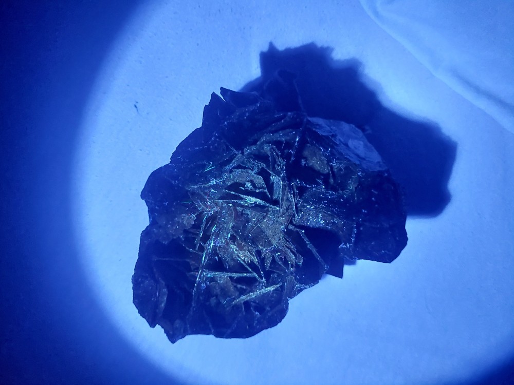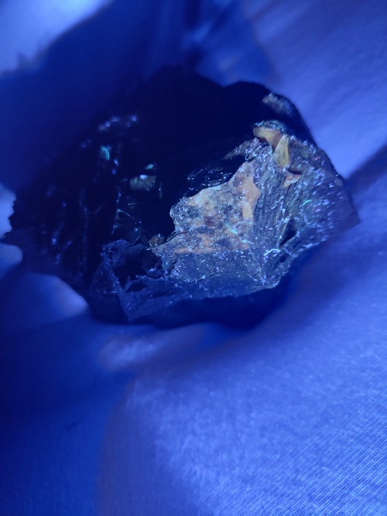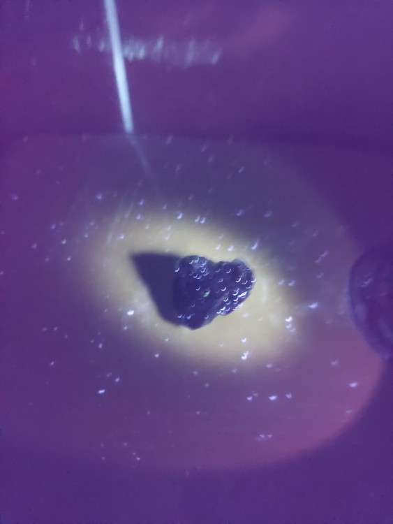 Oui Désolé, voici les test 😁 alors poid : 14g , densité : 2,8 , raye le verre , photos sous lampe uv long 365nm , merci -