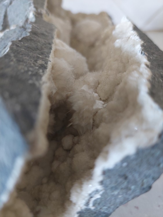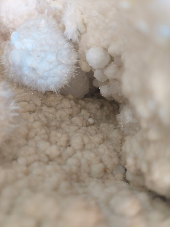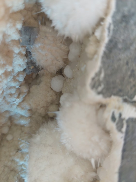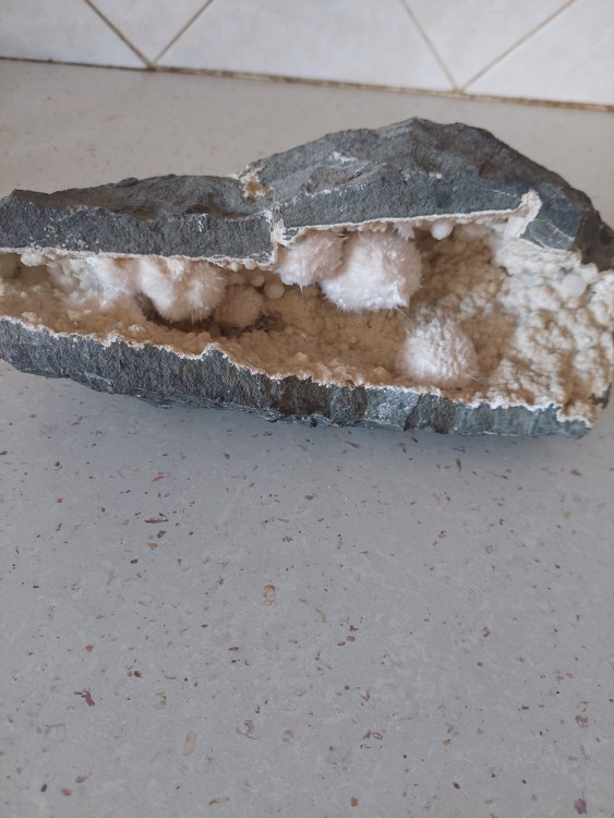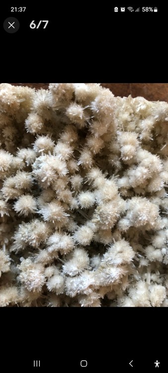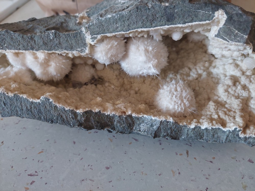 bonjour , voici un splendide spécimen trouvé sur le net . Etant collectionneur débutants J'ai un petit doute sur son authenticité . En effet les grosses boules sont cotonneuses et on l'air frêles au touché et la geode me semble pas très naturelle le spécimen pèse plus de 3 kg voici quelques photos, merci