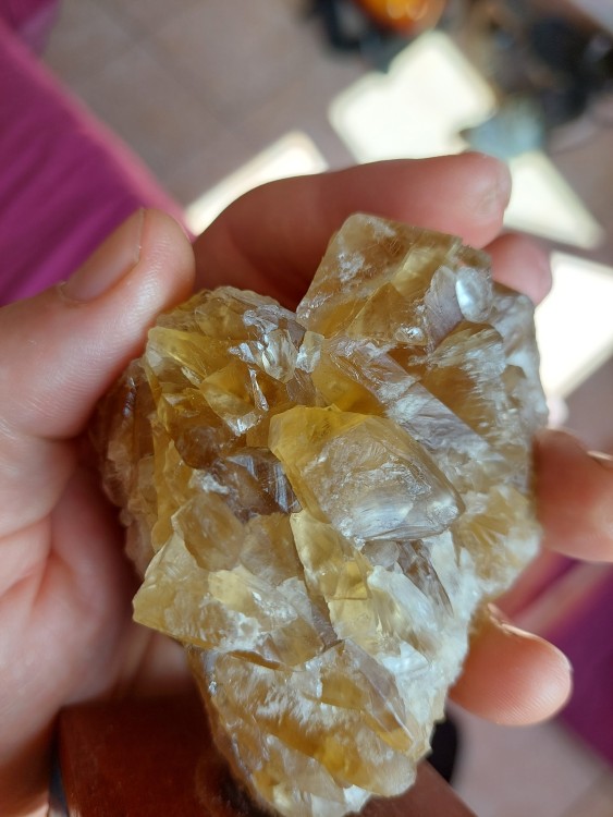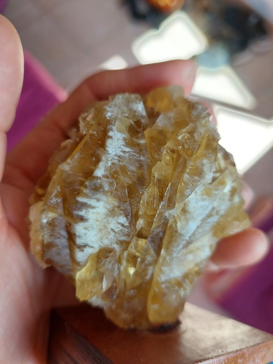 Bonjour , voici un cristal de citrine , mais je n'en suis pas sûr ? Quelqu'un pourrait m'aider svp, merci beaucoup