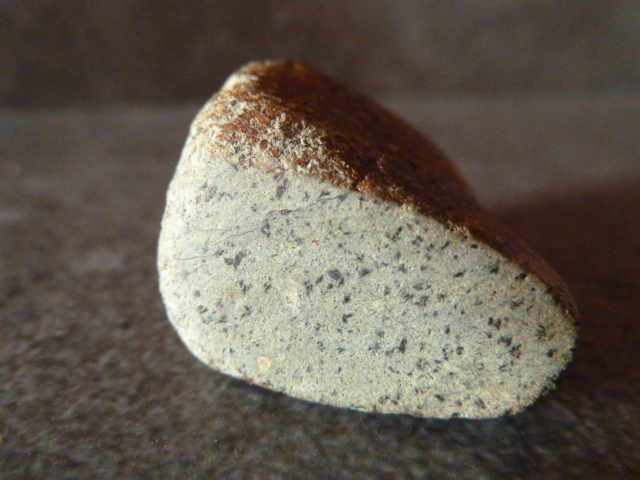 Bonsoir, tout le monde. Je m’appelle Moussa et je suis des Bouches du Rhône. Pourriez-vous me dire, visuellement parlant, si ce caillou aurait des chances d'être d'origine martienne ? Personnellement, et toujours visuellement parlant, je lui trouve des ressemblances avec une martienne. En effet, son aspect interne me fait penser à la météorite DAG-670. Qu'en pensez-vous ? Cordialement. N.B. : Dimensions du caillou : 3 cm par 2,6 cm et par 1.6 cm. Son poids est de 18 gr. Il fait bouger très légèrement l'aiguille de la boussole. Son trait est blanc. Désolé. Petite précision la première photo correspond à la DAG-670.