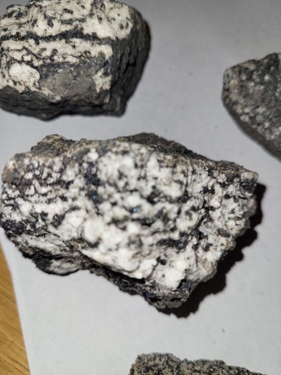 oublié de préciser : la première photo : albitite très pure avec zircons ? . deuxième : corindon dans pegmatite , toutes les deux viennent des environs du col d'Urdach -