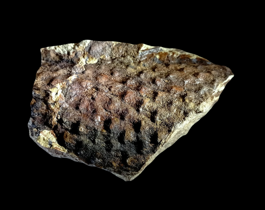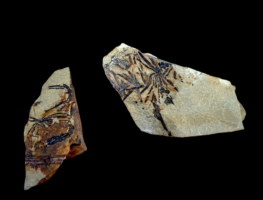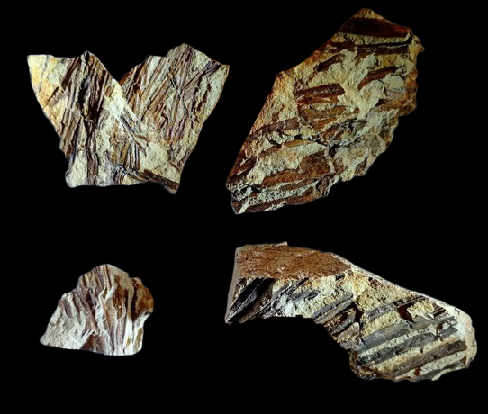 la matrice est un schiste gris clair à ocre et pas mal de reflets verdâtres aux cassures.