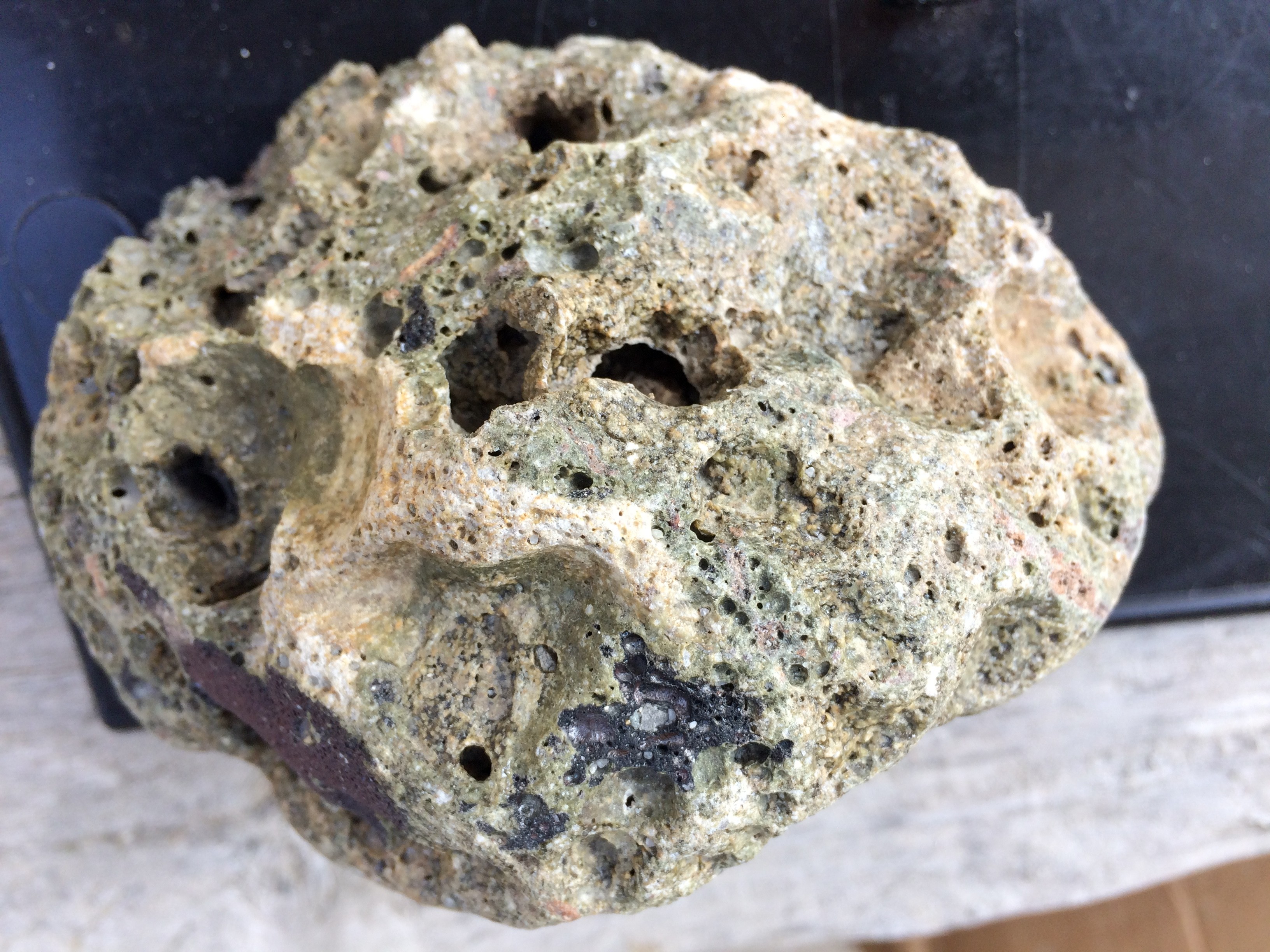 Bonsoir, c'est des conglomérats de grès rouge gloconieux, schisteux et phosphaté. Pour la photos, je peux pas la faire tout de suite. Mais d'après toi c'est quoi ses nodules gloconieux phosphaté, est-ce que cela pourrait-il être de l'apatite ? possible qu'il est de plus gros exemplaires qu'on peut tailler pour en faire des bijoux ? Bonne soirée -