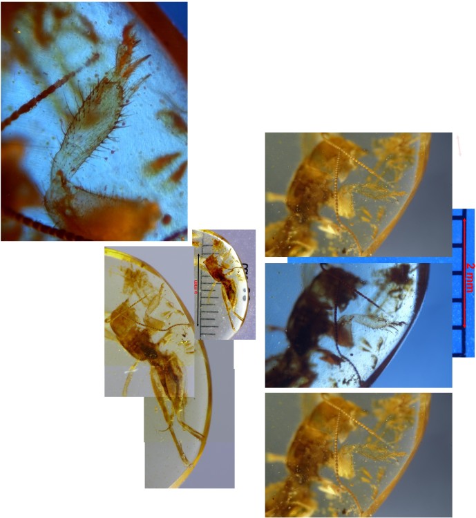 Bonjour, un petit Coléoptère qui va bientôt arriver en collection ( et son petit frère) ainsi qu' un Hyménoptère à déterminer de meilleures photos dans quelques temps 🙂 Pour le (les Coléos) Il s' agit très probablement de : Angimordella burmitina gen. et sp. nov. Coleoptera (Mordellidae). Provenance : Crétacé moyen (∼99 Ma) ; ambre birman, de la vallée de Hukawng, État Kachin, Myanmar. https://www.pnas.org/doi/full/10.1073/pnas.1916186116?fbclid=IwZXh0bgNhZW0CMTAAAR3Gi_v3BEtCtzzGYq9xuRa7P6vd9fVRNQIj_aCuzwNqg-706_bgkxIoOmQ_aem_UtZLMD-Ork1mpOevtAfx_A