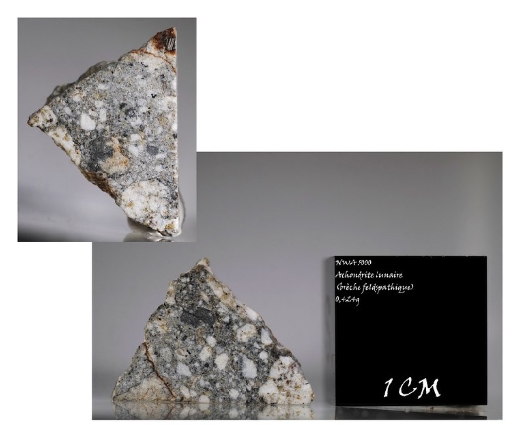 Bonjour à tous et à toutes, Ma collection de météorites est bien modeste par rapport à vos acquisitions. Je vous présente ma toute première lunaire acquise en 2012 auprès des découvreurs ( les frères Hupé).